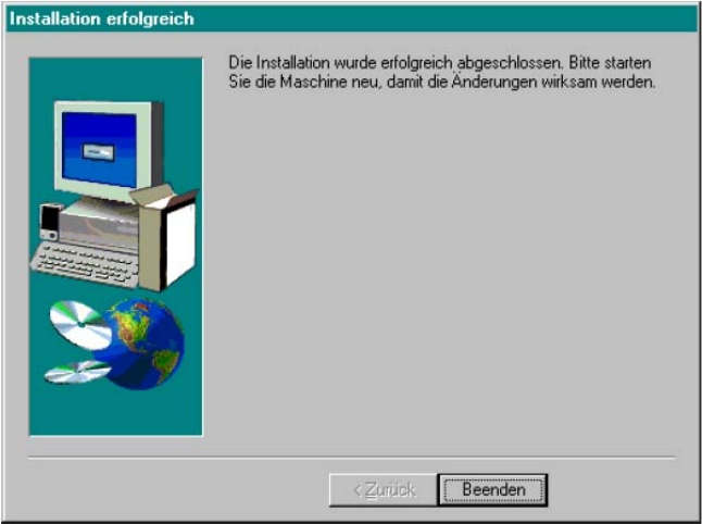 Folgende Meldung erscheint, nachdem die Installation erfolgreich abgeschlossen wurde: 1