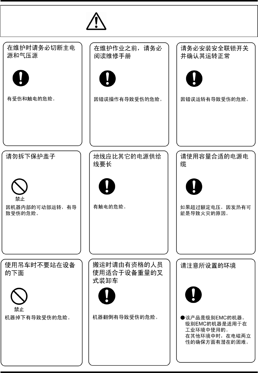 为了防止给使用者或者其他人员造成人身伤害及财产上的损失,防患于未然,希望严格遵守以下的说明。