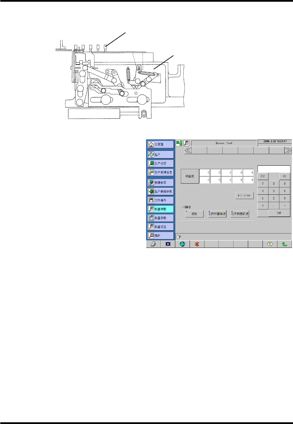 3. 请使用机器调整菜单上的手动进给功能,将编带