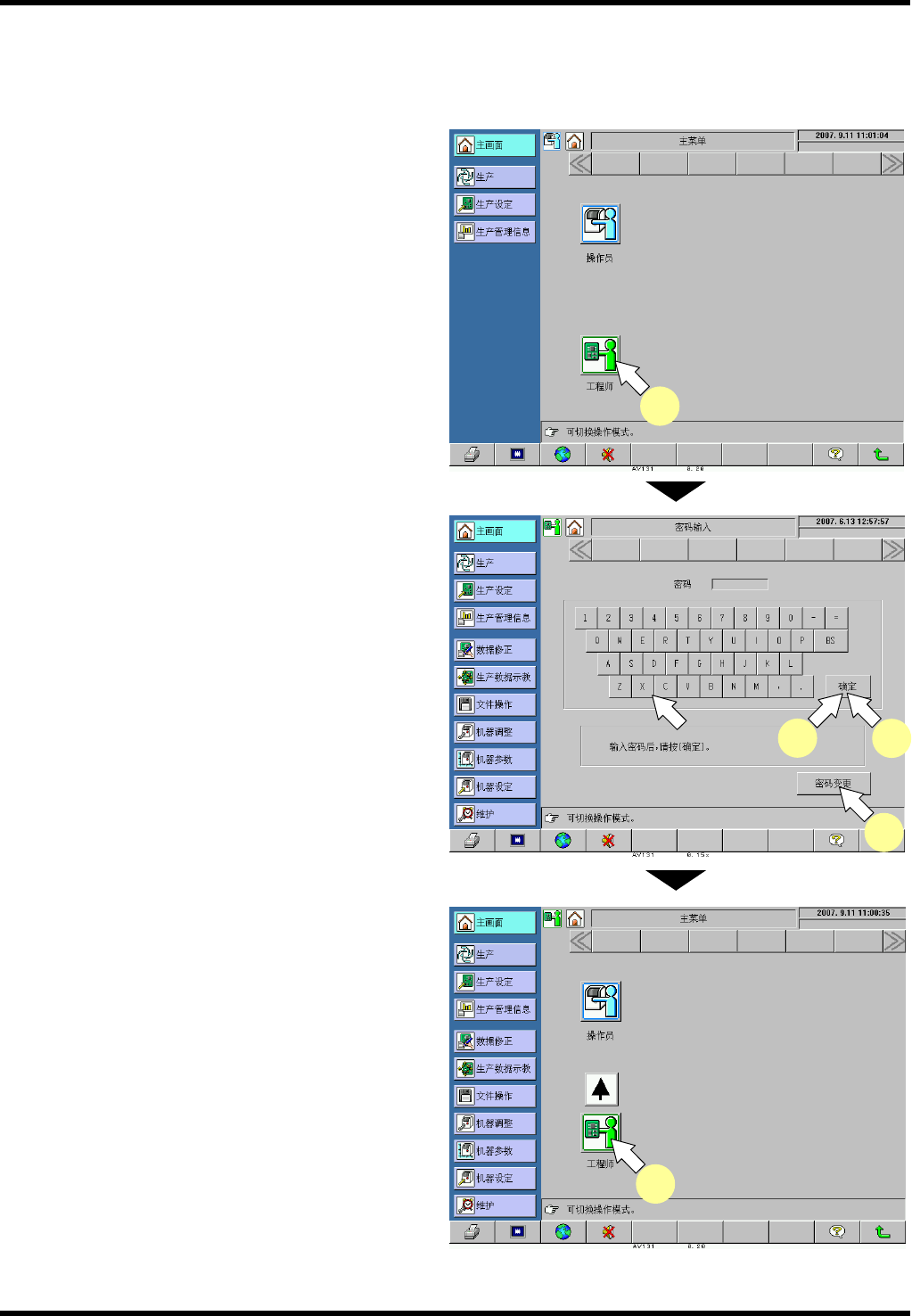 6. 按下 “主菜单” 画面的 [工程师] 图标,确认是