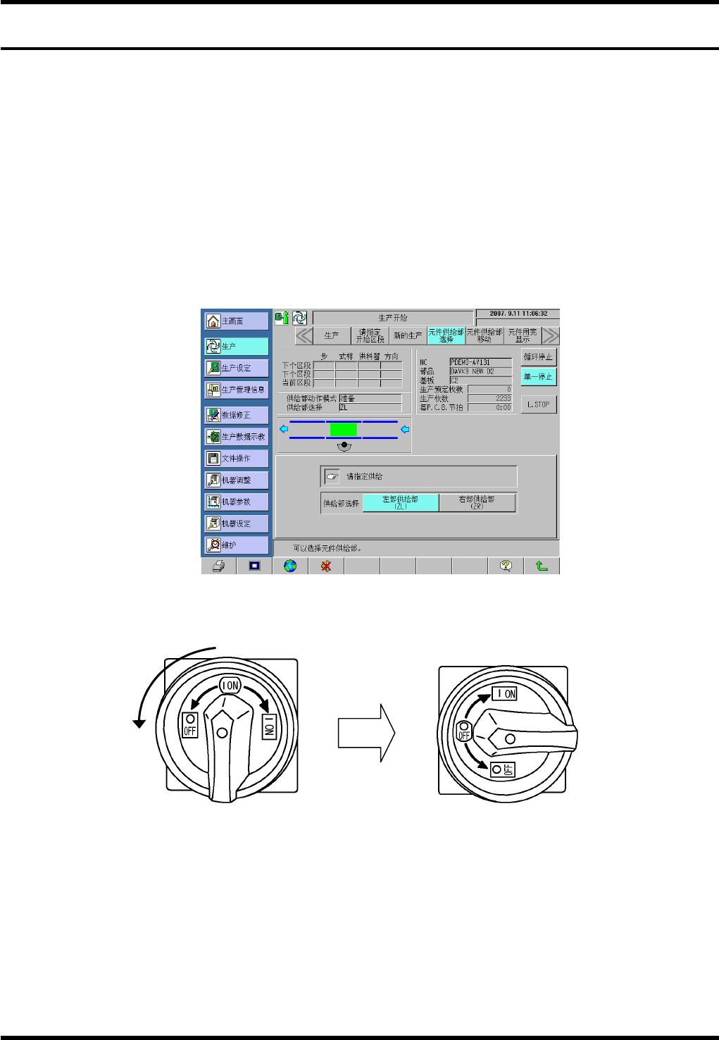 RG131 操作手册 4.2 关机 ( 关断电源 ) DA7OCC-30-020- A0 4.2-1 4.2. 关机 ( 关断电源 ) DA7OCC-30-020-A0 4.2.1 关 机 1. 1. 停止生产 运转。 按下 [L. STOP] = 提 示 = 对已搬入机器的基板进 行生产,搬出到下游工序后 停止生产。 2. 机器标题 栏将显示 “ 生产预定枚数后 结束 ” 。 = 提 示 = 如果事先设定了生产预 定枚数,则 [L. …