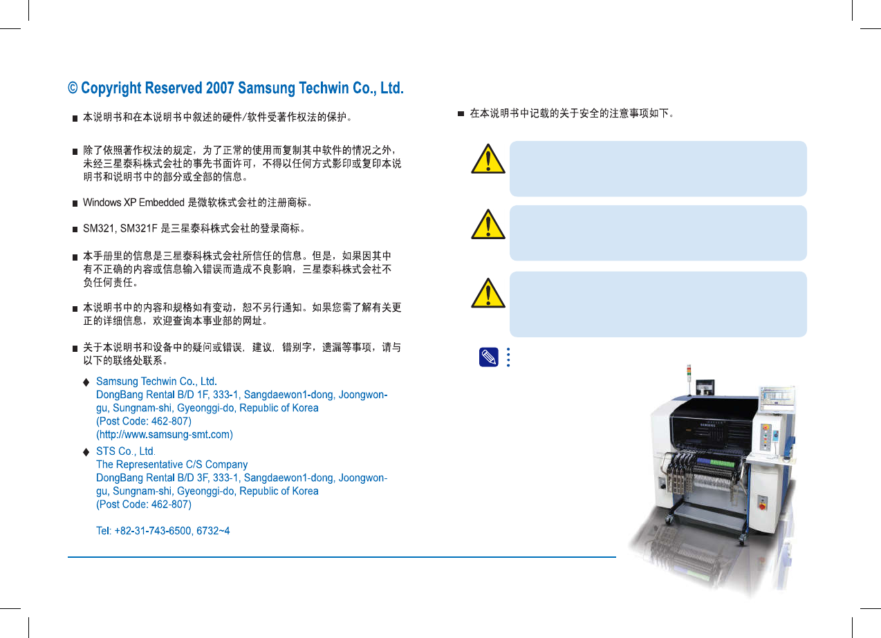 Operation Handbook SM321(F) Operation Handbook (2a/8) V ersion 3.0 P .N: J6 8 061019C SAMSUNG Advanced Flexible Component Placer