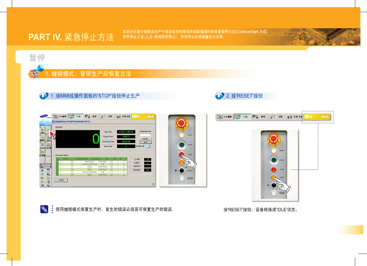本部分主要介绍检点生产中错误或其他事项并采取措施时的设备暂停方法