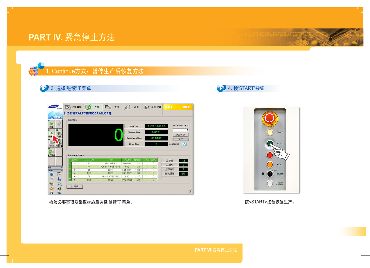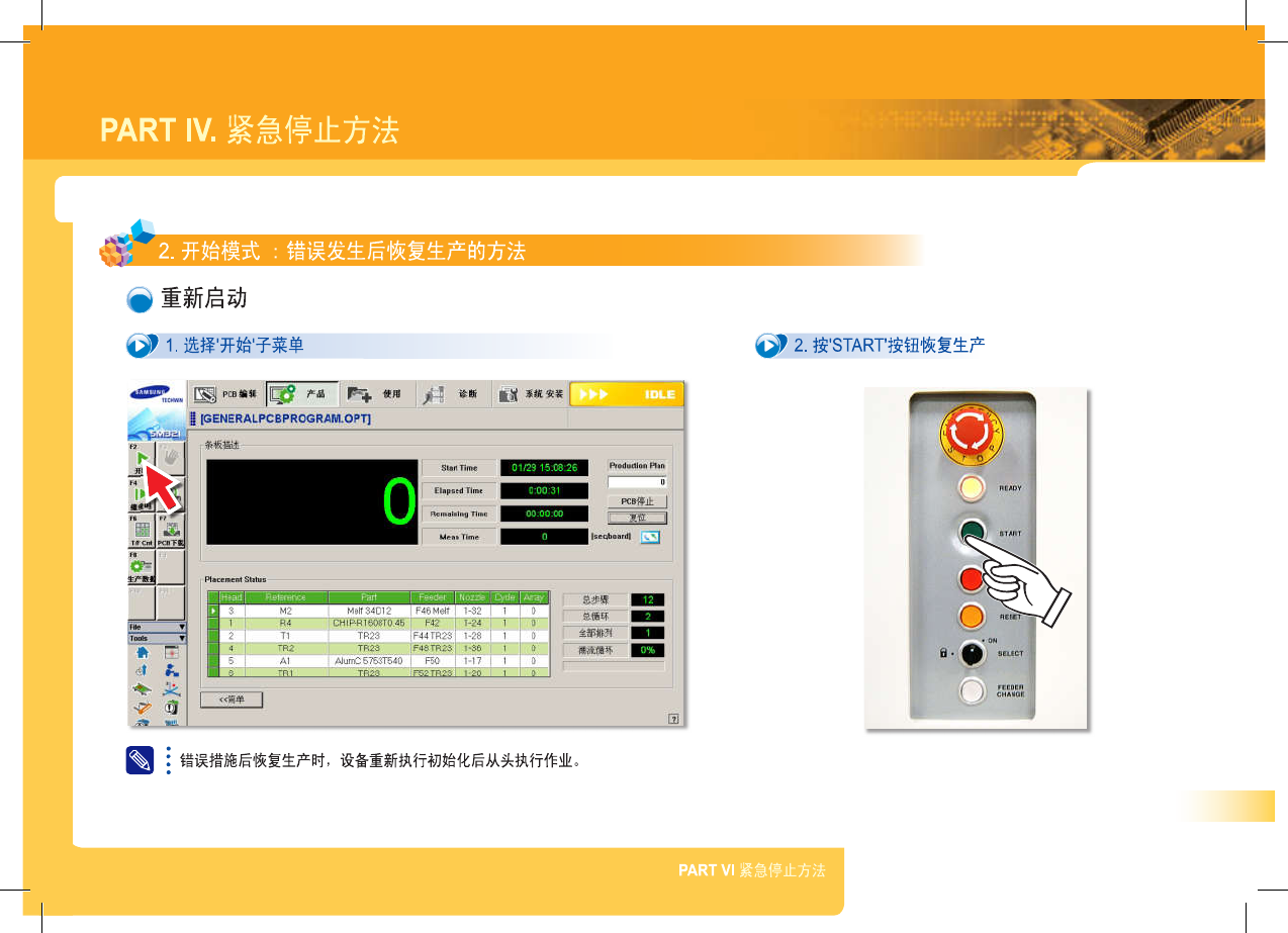 SM 3 21 (F ) Op er a t io n H a nd bo ok 36 1 , 綱 PART IV . 紧急停止方法 工 2 . 开 始 模 式 : 错 误 发 生 后 恢 复 生 产 的 方 法 ⑯ 撤销 , FREEZE , 状态 ^ 1 ^ 3 . 错误措施 . 按 ' RESET ' 按钮 2 . 按 ' READY ' 按钮 O 礬 O MIUT o 二 " E…