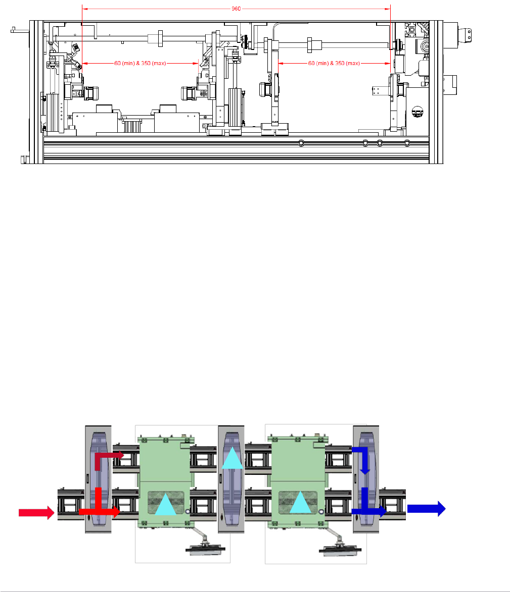 conveyor is 309.5 mm. If you are setting up the tester as SMEMA transport with a height of 950 mm,