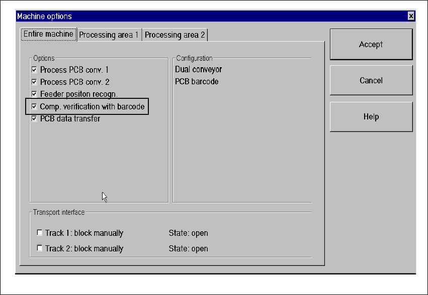 Fig. 7.6 - 1 Dialog: Machine Options – Setup Control with Barcode