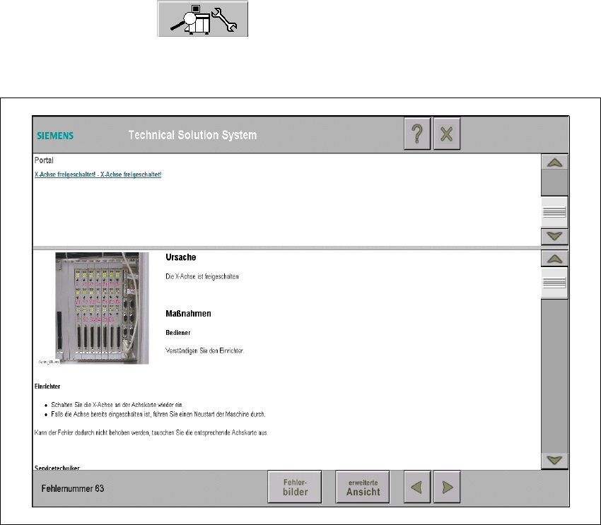 Fig. 5.2 - 3 Example in german: Diagnostics system for the current error