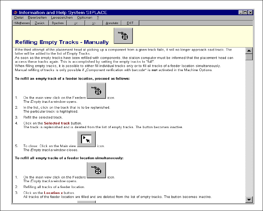 Fig. 6.1 - 5 Example: Help on the topic "Refilling Empty Tracks - Manually"