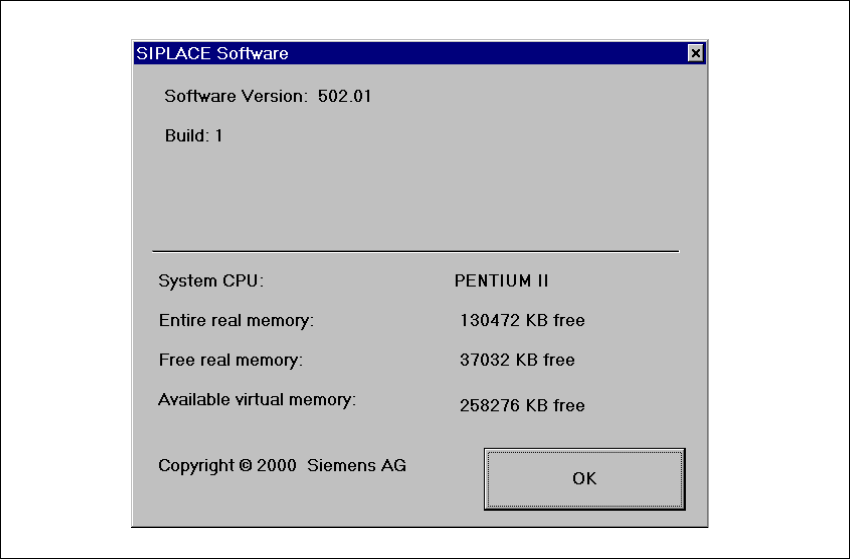 SIPLACE S oftware Guide SR.503.xx 6 Online help system Issue 12/01 E N 6.1 General 81 6.1.1.5 Calling general st ation computer inf ormation In the He lp menu, click the About... item. The following window is opened. T…