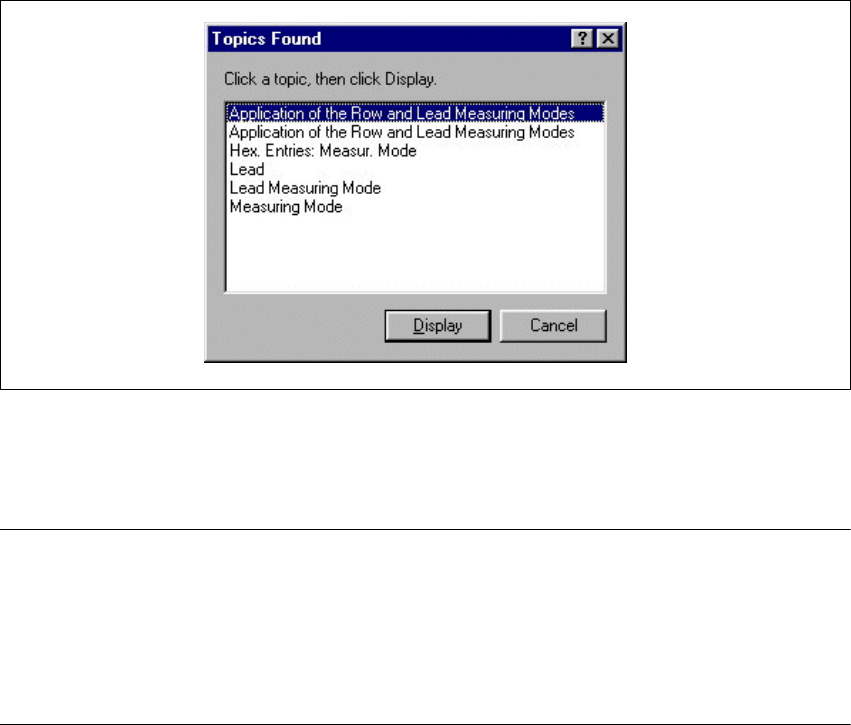Select the entry for the required topic and click the Display button. Both windows are closed