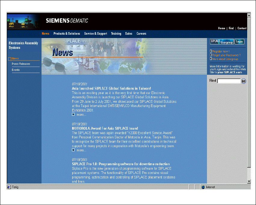 Information can also be found on the Internet. You can log on to the SIPLACE home page under
