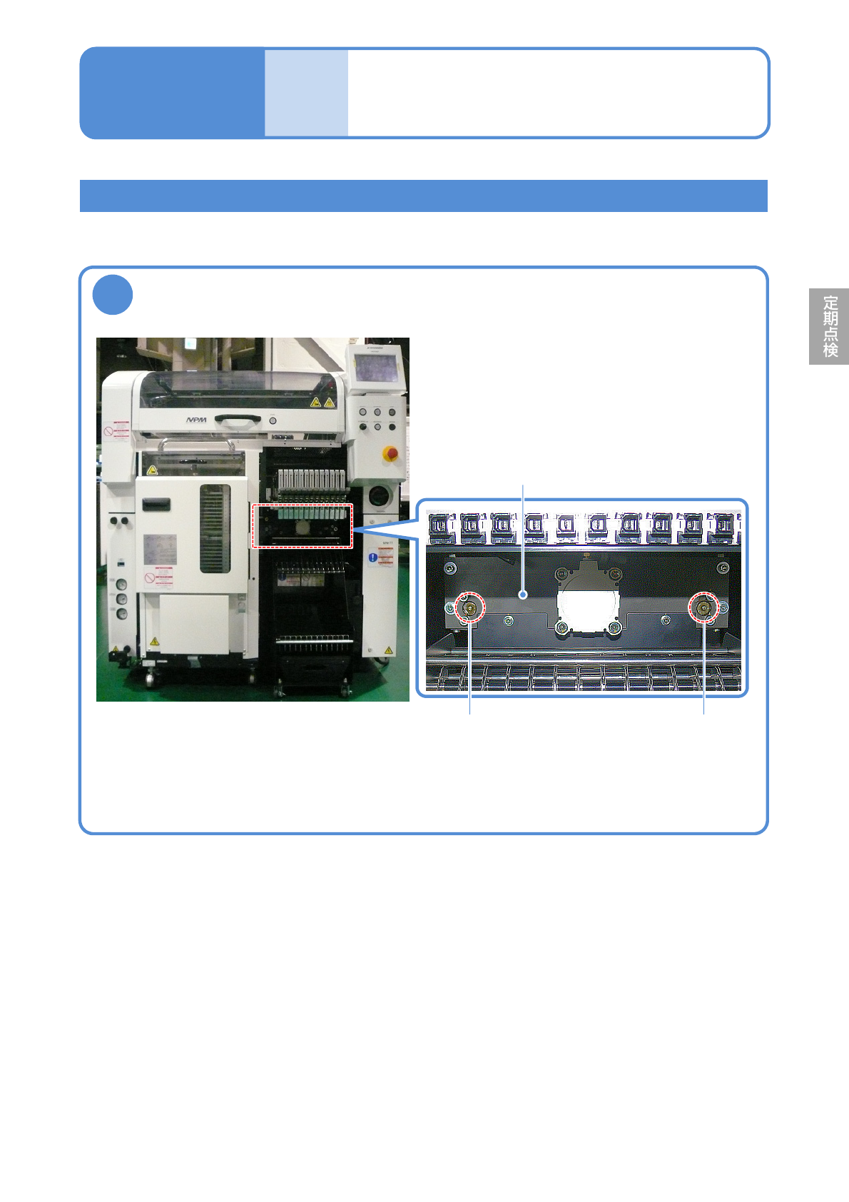 EJM1EJ-MB-06 M-02 NPM-TT2 6-18 -1 メンテナンス 編 6-18 下受けピン用ノズル各部の名称と役割 A B D E C E ノズルテーパー面 装着ヘッドのノズルホルダーにチャッ キングされる部分。 ( テーパー面・チャッキング溝にほこり などが付着すると、空気漏れ・チャッ ク不良の原因 ) ノズル反射面 部品装着用と異なり、フランジと同じ材 質。マルチ認識カメラからの LED 照明光 を反射してノズルが正…