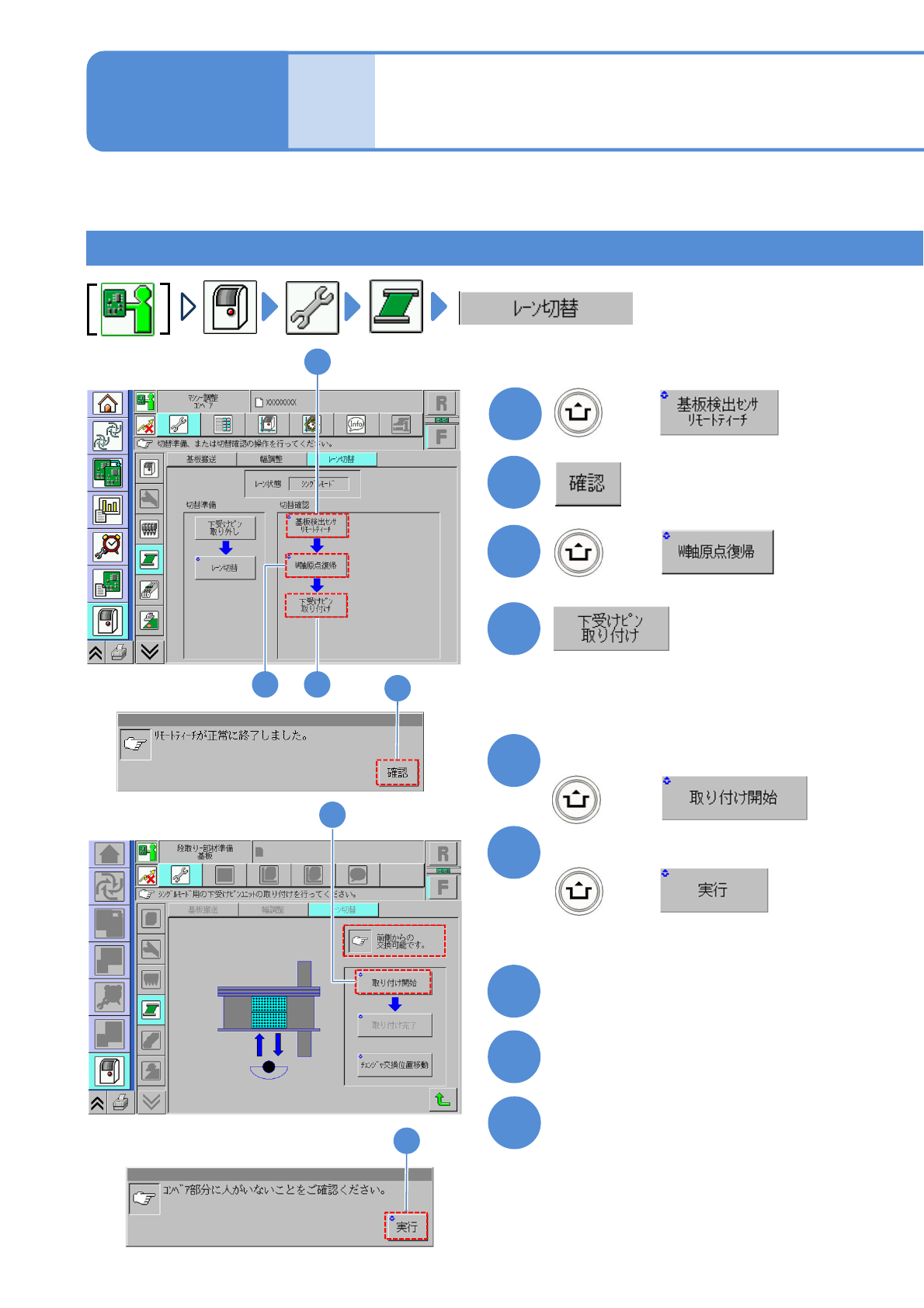 切り替えは部品供給の仕様により異なります。それぞれの手順に従って切り替えを行ってください