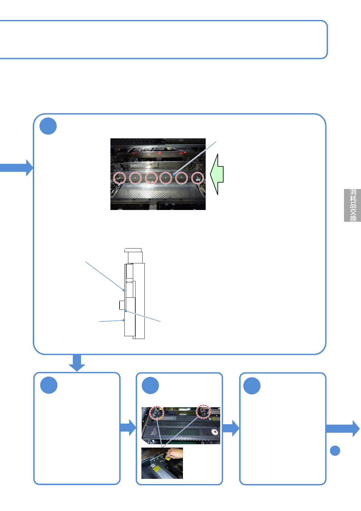 NPM- TT2 EJM1EJ-MB-12M-04 12-1 -3 基板搬送コンベヤーの 搬送ベルトの交換 2 メンテナンス編 12-1 ■各レーン 6 本 レーン 1 側 レーン 2 側 9 新しいベルトを取り付ける 番号 ベルトの長さ [mm] 品番 1050 MTNK002604AA 1980 MTNK002584AA A B ●事前にテンションプーリーのねじを緩める。 ( 各 3 か所 ) ●ベルトの表面、裏面について 表面 :…