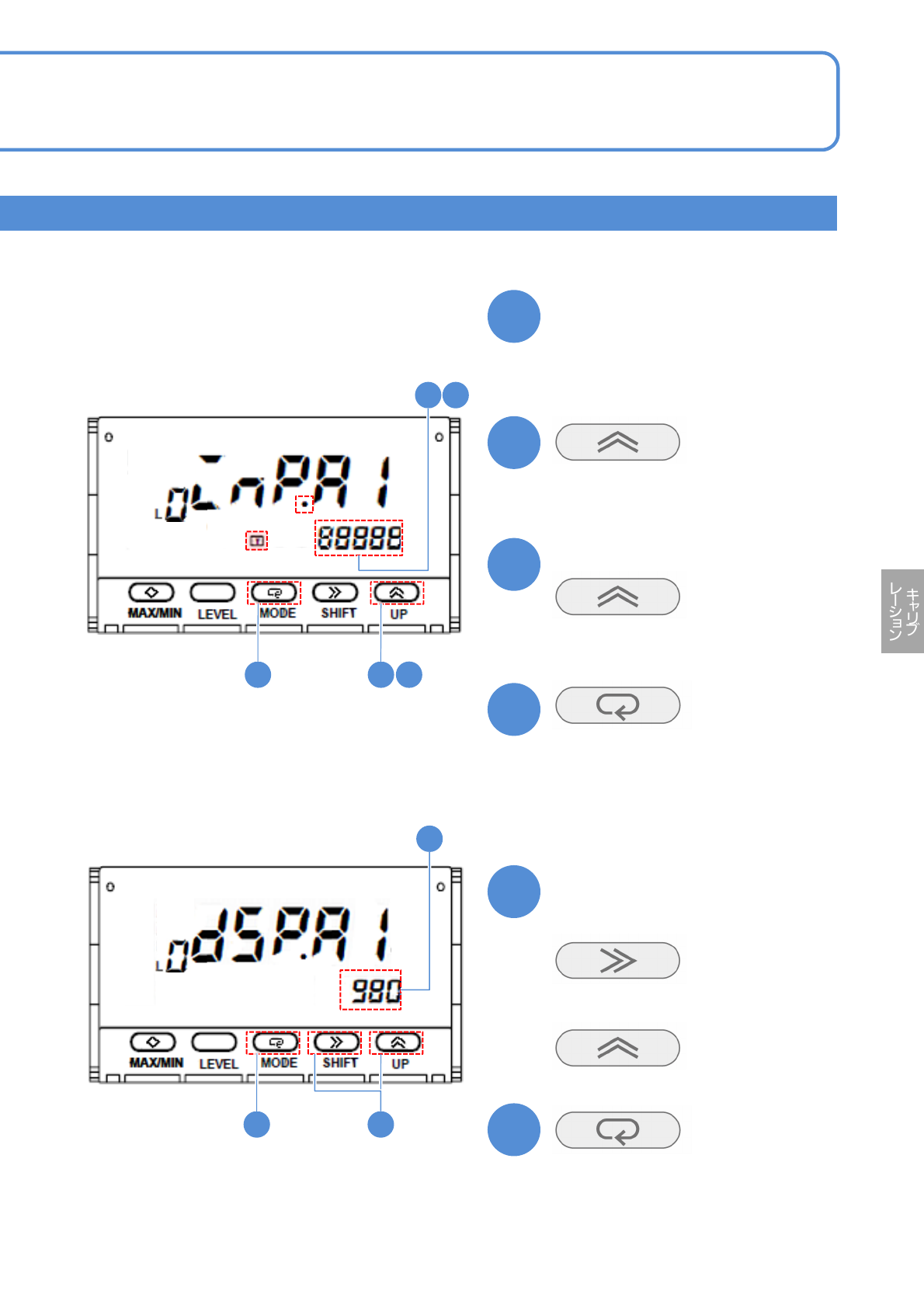 (値が表示され、ランプが点滅する。)