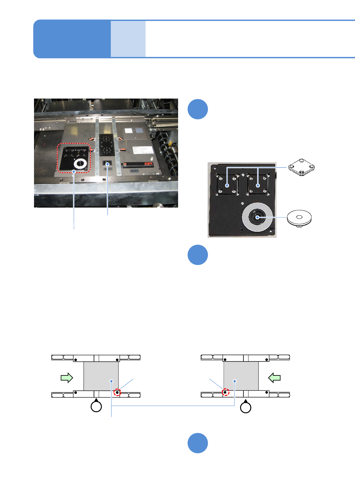 ジグステーション 2 メンテナンス 編 13-10 13-10 -3 8 ジグ部品、照明輝度ジグを ジグステーションにセットする ●ジグ部品、照明輝度ジグは、単体で の方向性なし。 照明輝度ジグ ジグ部品 ●ジグ部品、照明輝度ジグ格納部 電源スイッチ ジグ格納部 ●ジグステーション 9 10 ● LED ランプが点灯していることを確 認する。 ジグステーションの電源スイッ チを ON にする ジグステーションを搬送コンベ ヤーに載せる …