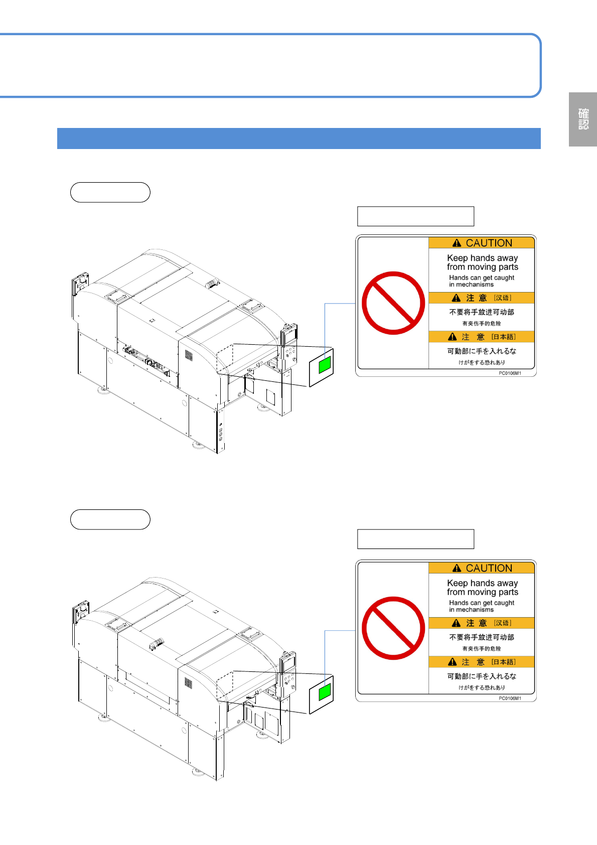NPM- TT2 EJM1EJ-SF-01N-05 ■フィーダーテーブルカバー/安全カバー ( 切替仕様 ) 前側 1-2 -12 注意ラベル 後側 マルチ認識カメラ前 マルチ認識カメラ前