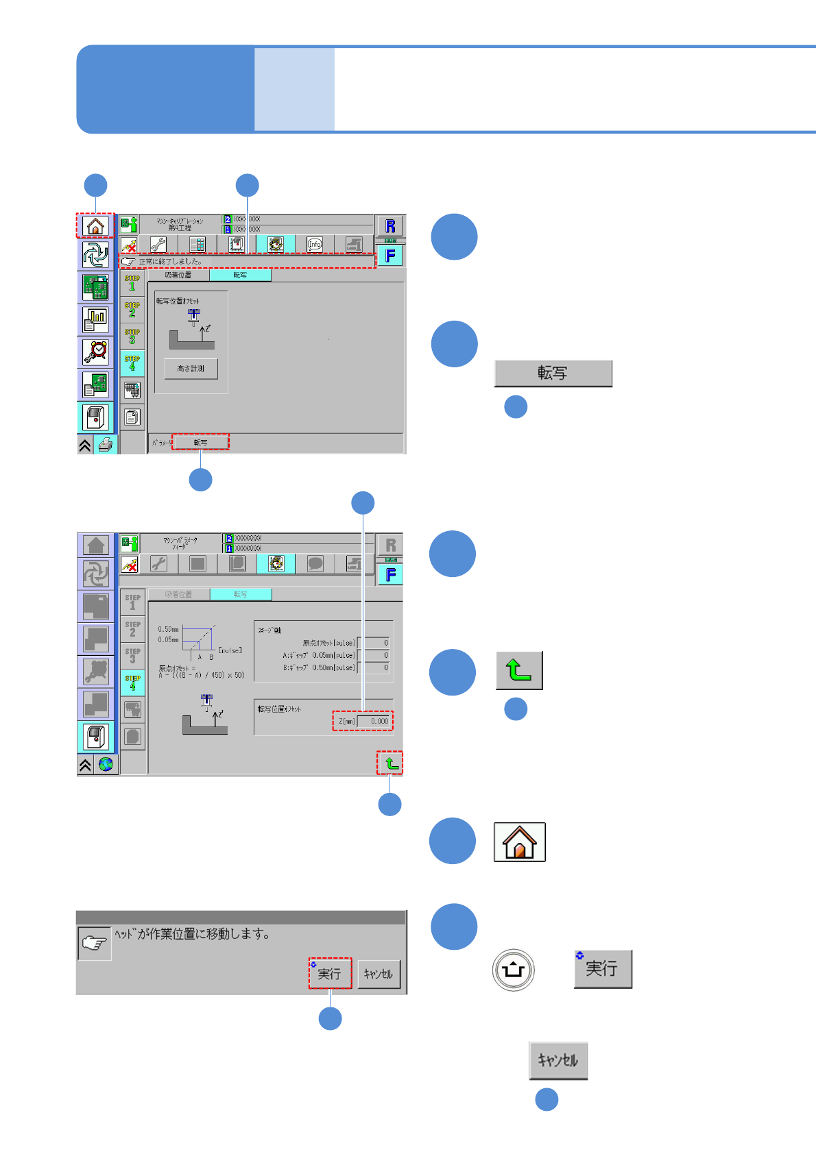 情報が必要になります。本キャリブレーションを行うことで、上記相対位置を計算するための転写位置
