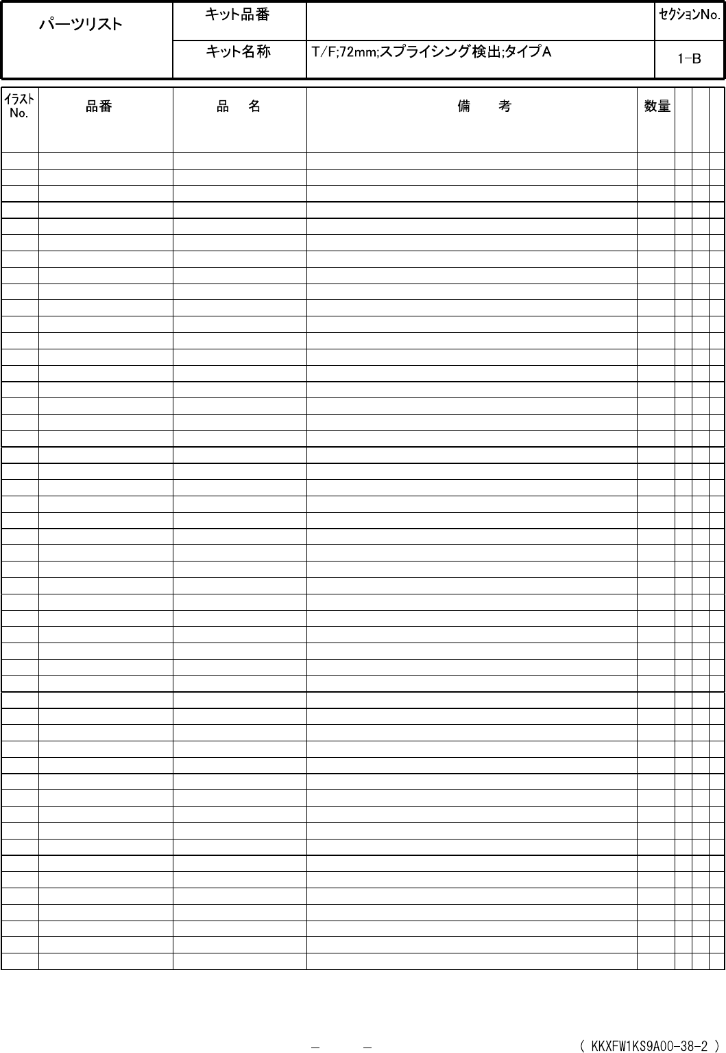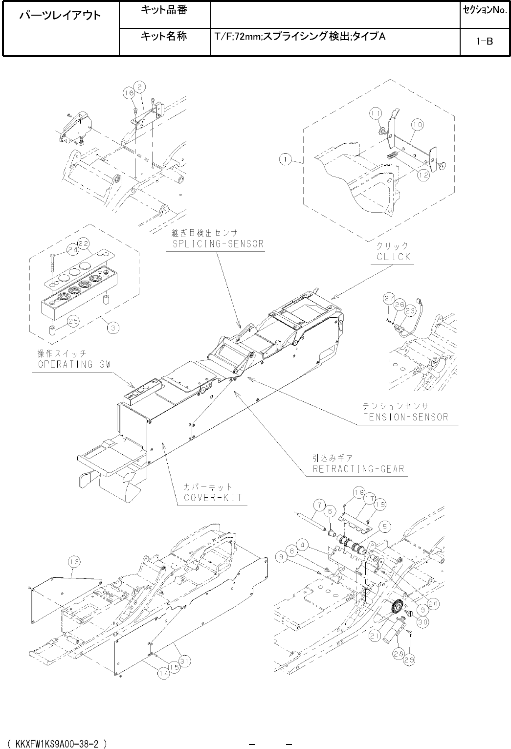Ref No. Remarks R 1 Q't y Tape Feeder; 72 mm; Splice sensing; Type A Part No. R 2 Kit No. Kit Name KXFW1KS9A00 Part Name PARTS LIST Section No. R 3 CLICK 1 1 KXFW1KWNA00 TAPE-GUIDE(SENS) 1 2 KXFW1KXLA00 OPERATING-SW…