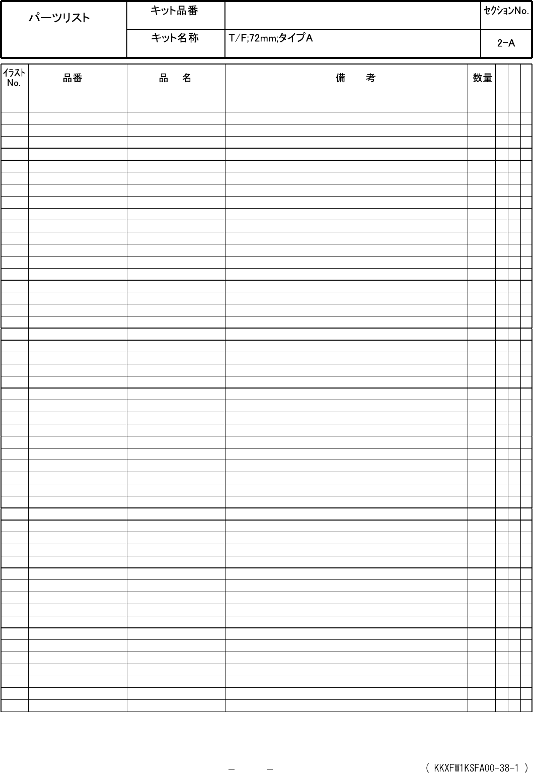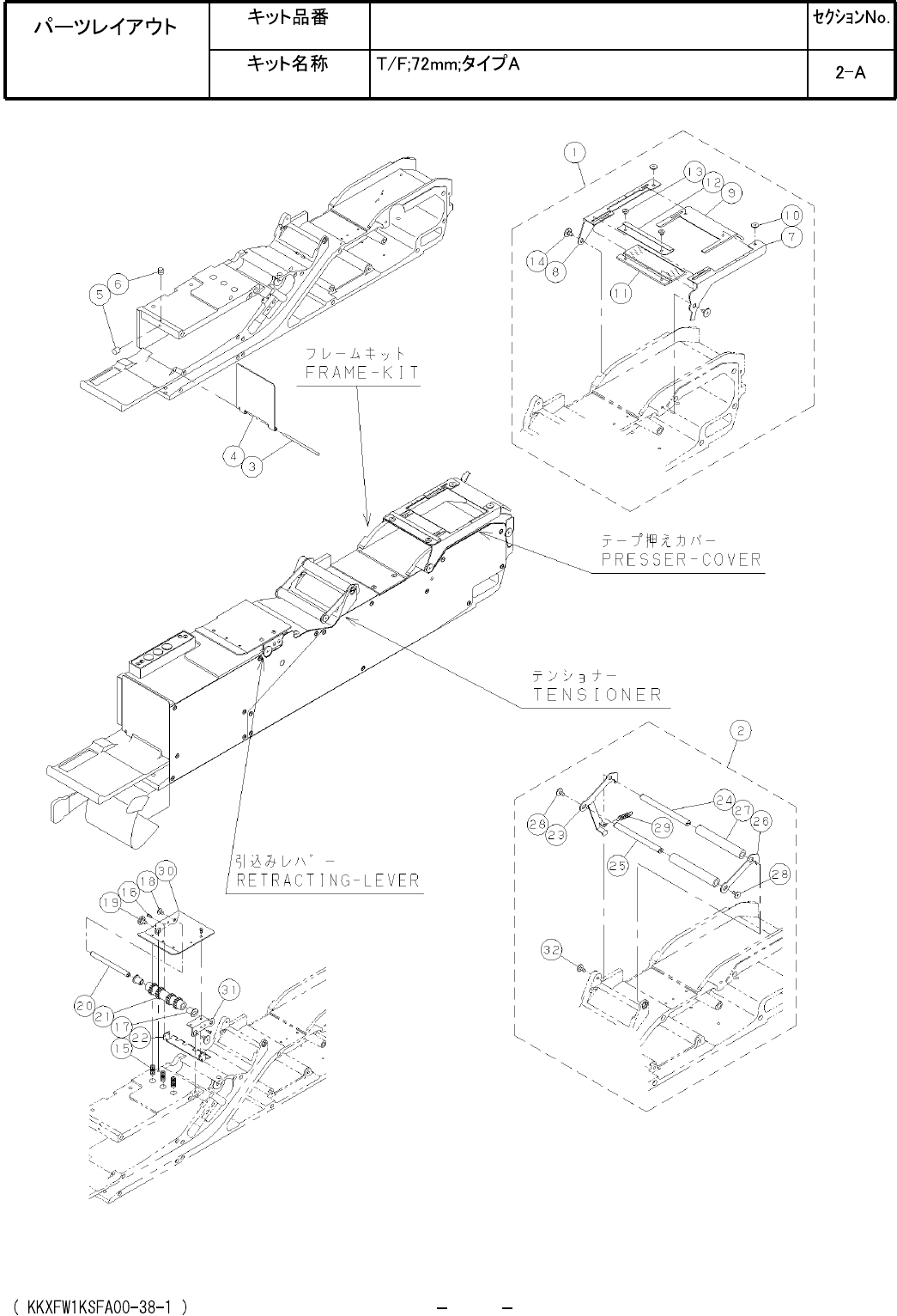 Ref No. Remarks R 1 Q't y Tape Feeder; 72 mm; Type A Part No. R 2 Kit No. Kit Name KXFW1KSFA00 Part Name PARTS LIST Section No. R 3 PRESSER-COVER 1 1 N610090961AA TENSIONER 1 2 N610025481AB PIN 1 3 KXFA1M9AA00 COVER…