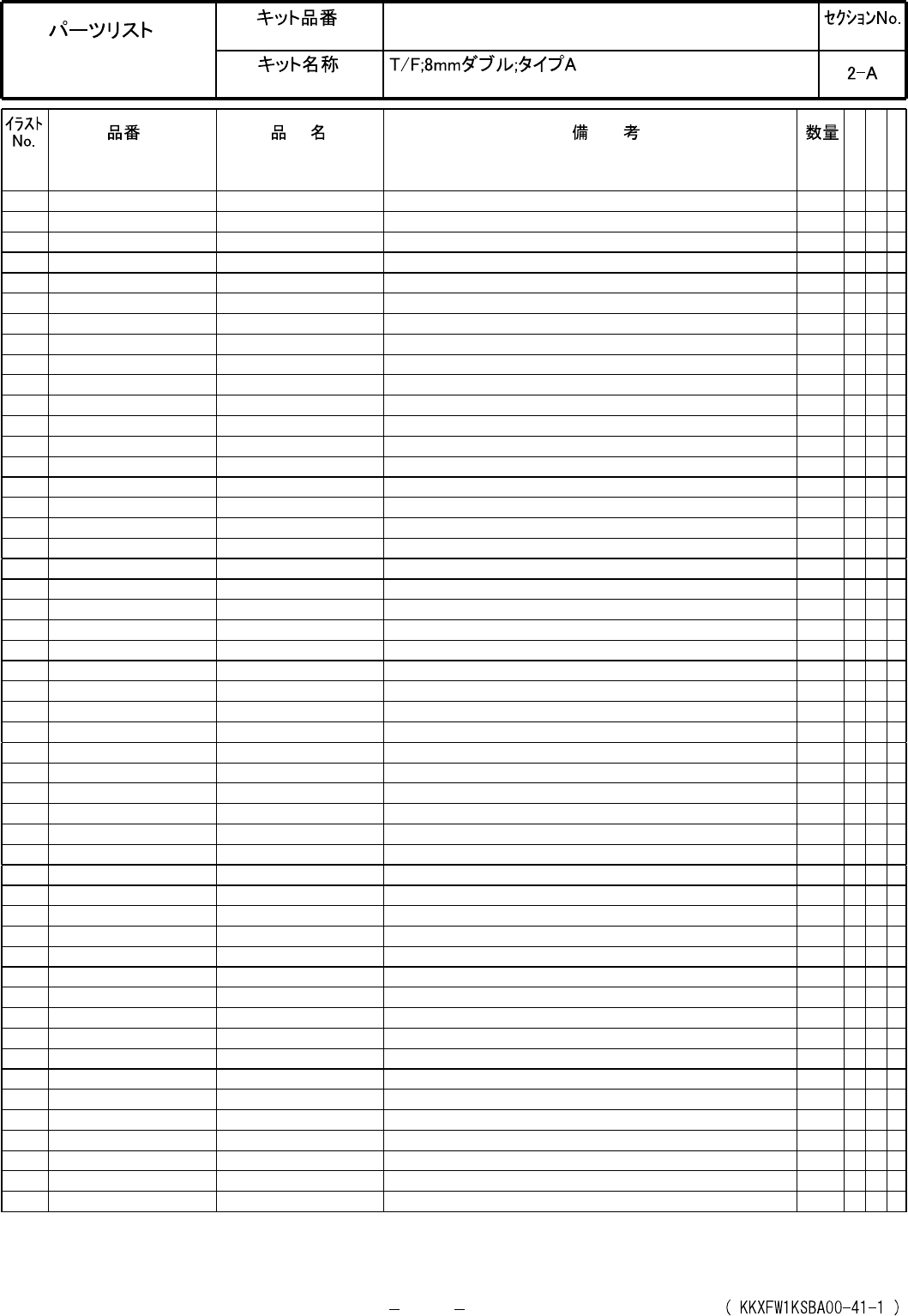 Tape Feeder; 8 mm Double; Type A Kit No. Kit Name KXFW1KSBA00 PARTS LAYOUT Section No. M7