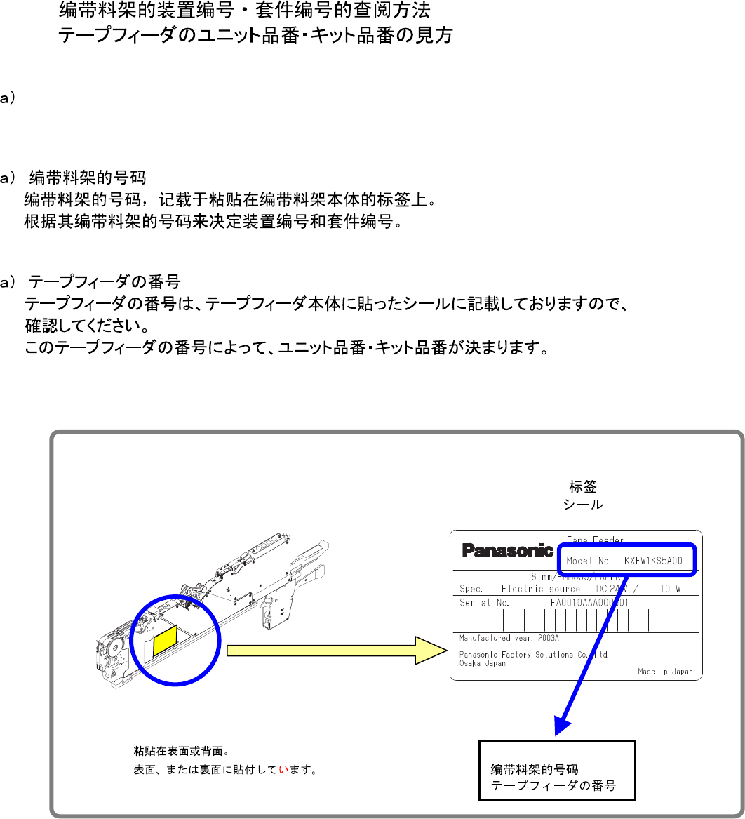 The number that corresponds with the tape feeder No. checked in a) above is the unit No. of