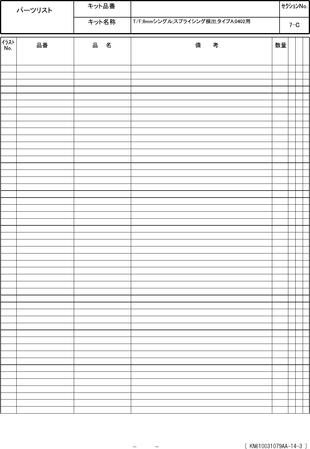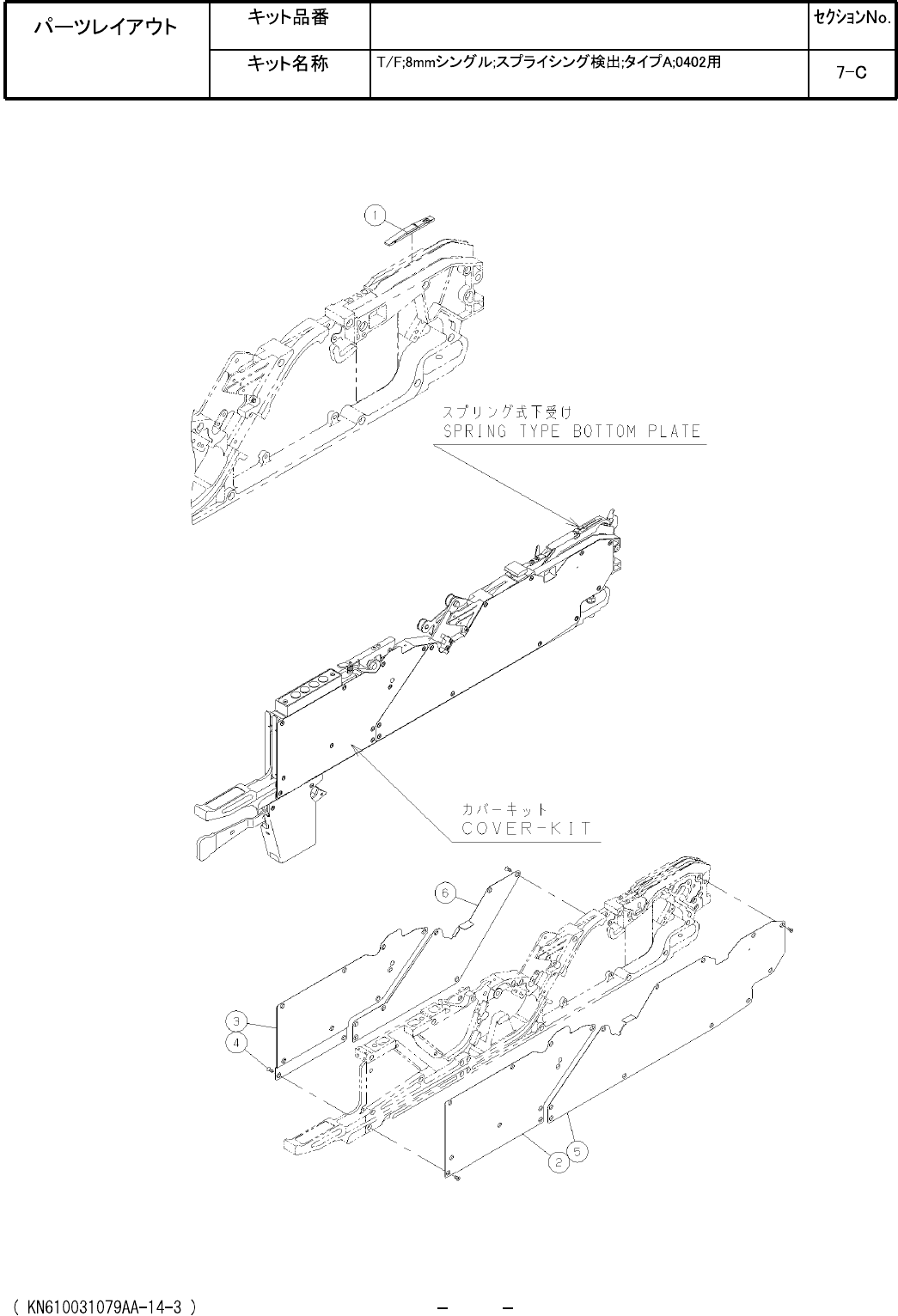 Ref No. Remarks R 1 Q't y Tape Feeder; 8 mm single; Splice sensing; Type A; For 0402 Part No. R 2 Kit No. Kit Name N610031079AA Part Name PARTS LIST Section No. R 3 Spring type botto m plate 1 1 N610014970AE COVER 1…