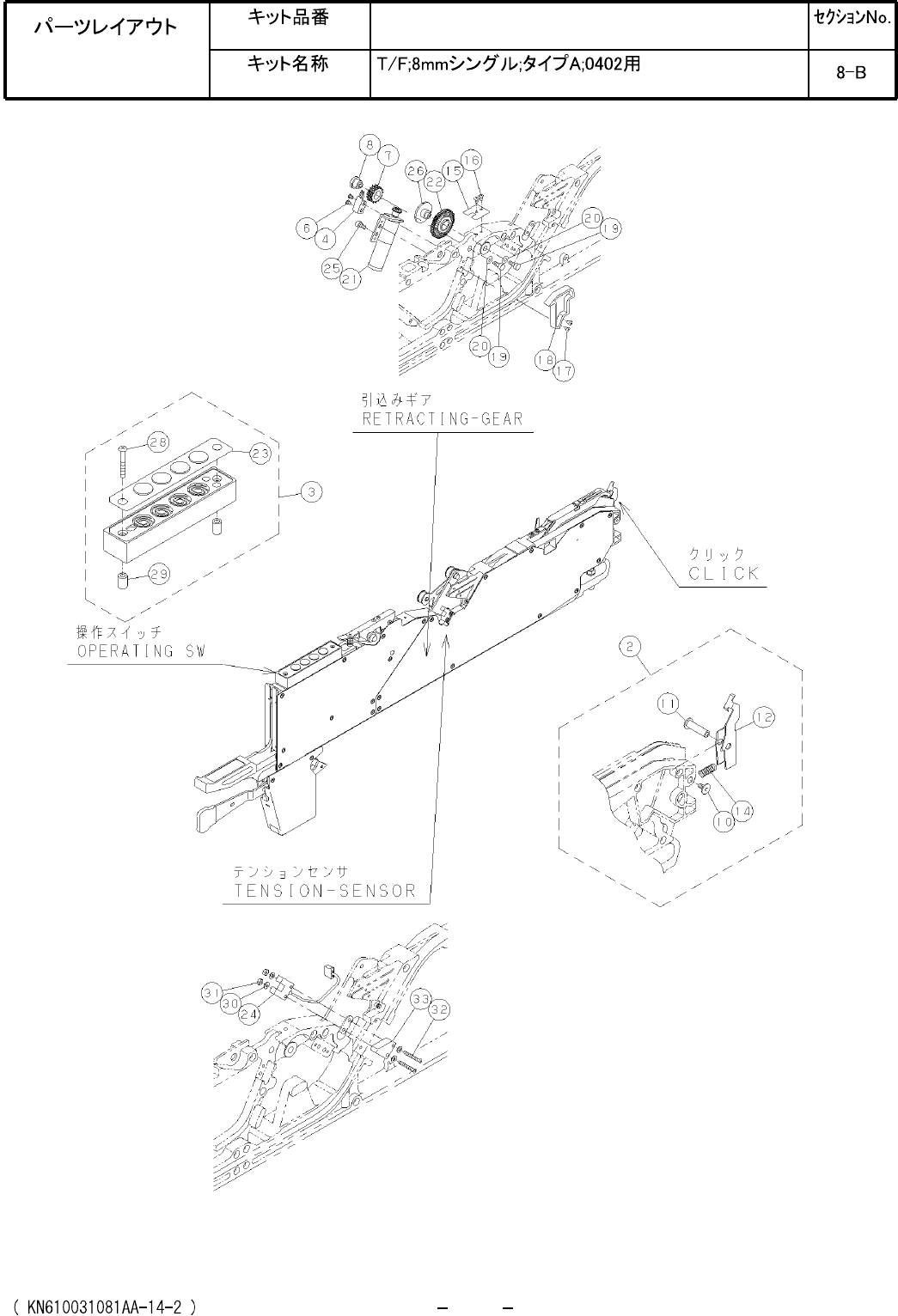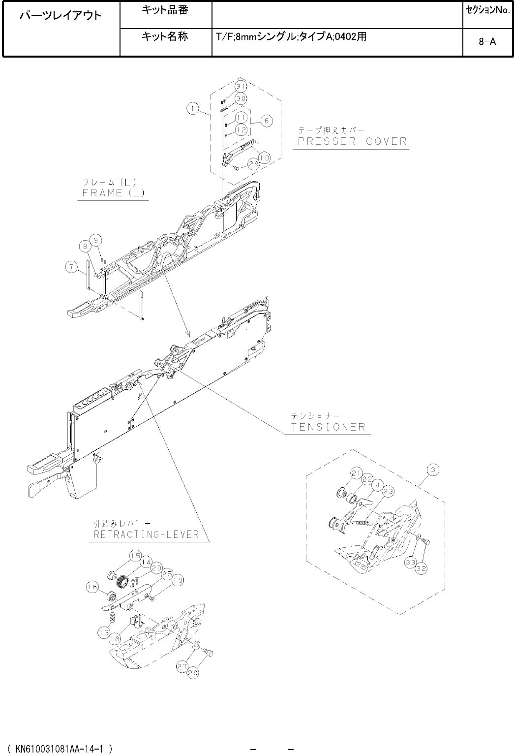 Ref No. Remarks R 1 Q't y Tape Feeder; 8 mm single; Type A; For 0402 Part No. R 2 Kit No. Kit Name N610031081AA Part Name PARTS LIST Section No. R 3 PRESSER-COVER 1 1 N610092921AA TENSIONER 1 3 N610007640AB LEVER 1 …