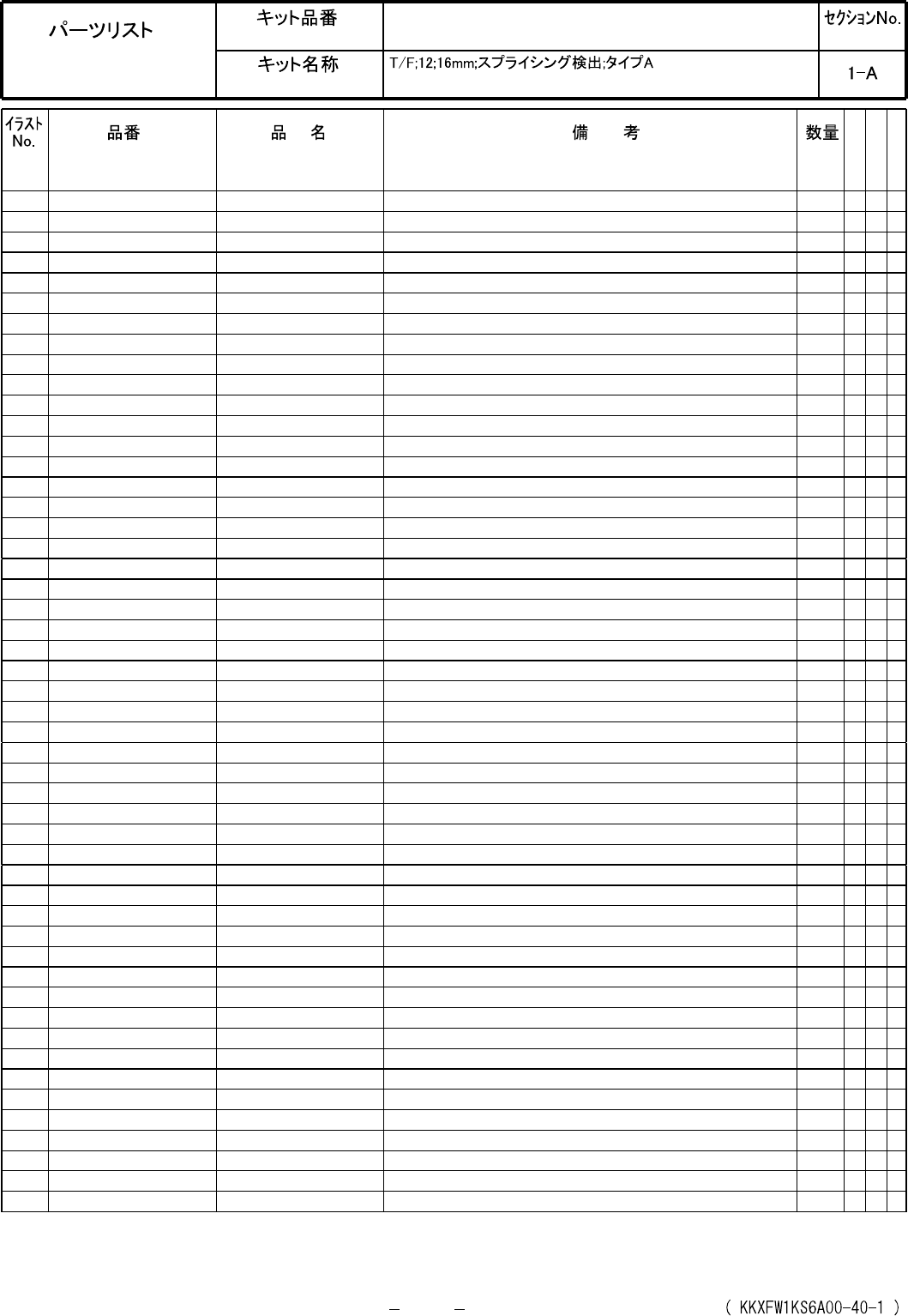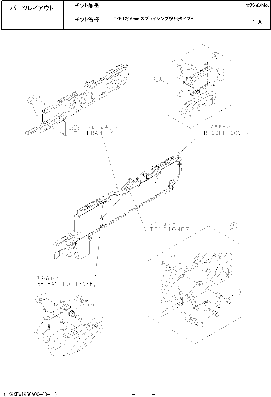 Tape Feeder; 12;16 mm; Splice sensing; Type A Kit No. Kit Name KXFW1KS6A00 PARTS LAYOUT Section No. M1