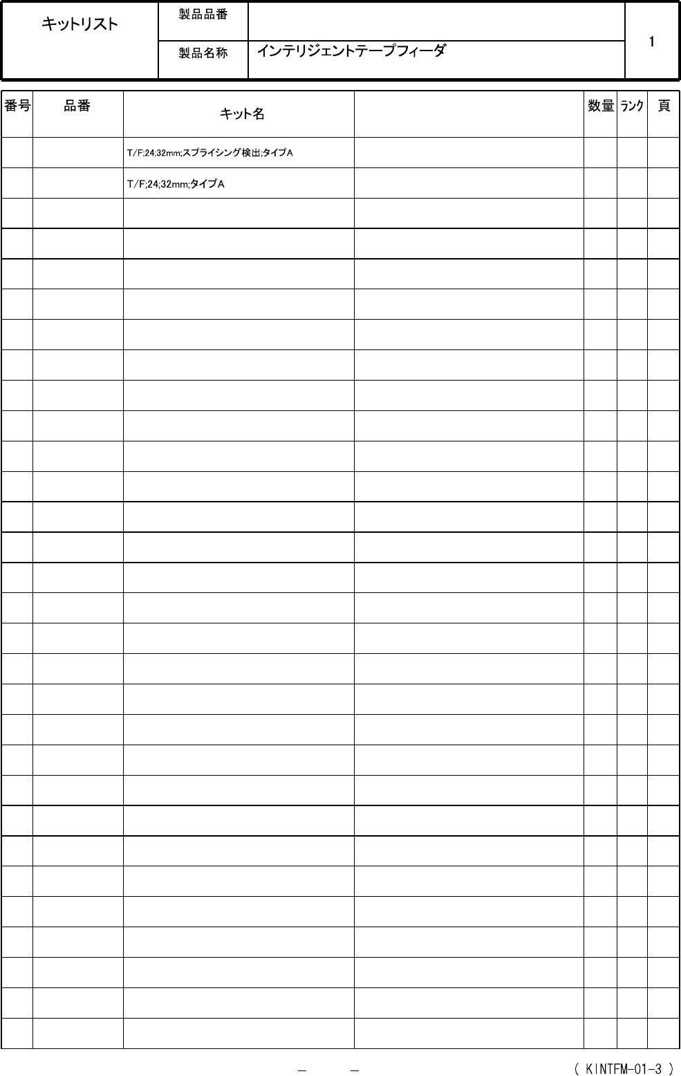Kit Name Rank Q'ty Part No. Page No. Intelligent Tape Feeder Model No. Model Name KXF-INTF KIT LIST 1 1 KXFW1KS7A00 Tape Feeder; 24;32 mm; Splice sens ing; Type A M1 1 2 KXFW1KSDA00 Tape Feeder; 24;32 m m; Type A M5…