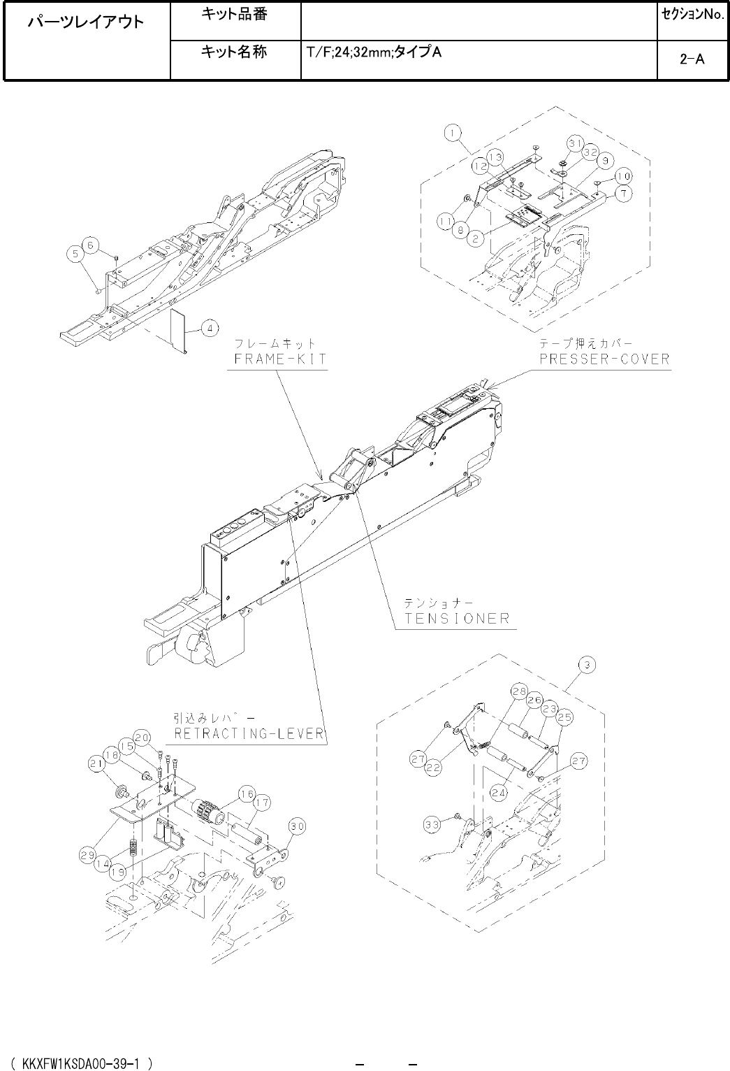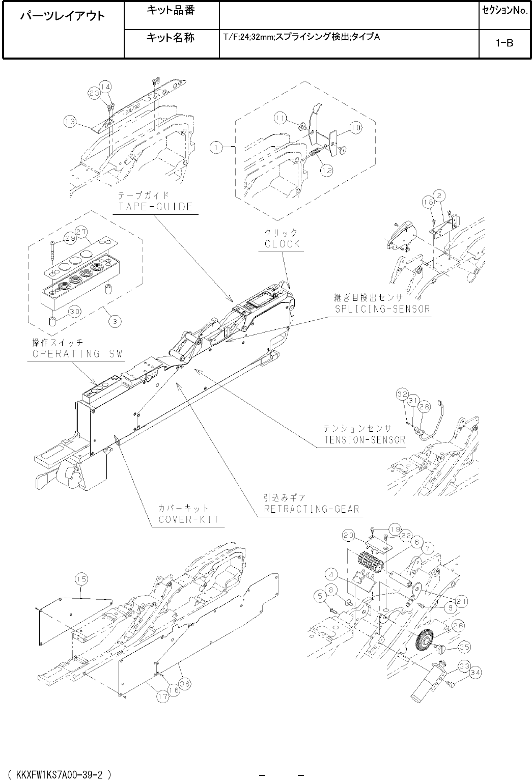 Ref No. Remarks R 1 Q't y Tape Feeder; 24;32 mm; Splice sensing; Type A Part No. R 2 Kit No. Kit Name KXFW1KS7A00 Part Name PARTS LIST Section No. R 3 CLICK 1 1 KXFW1KWLA00 TAPE-GUIDE(SENS) 1 2 KXFW1KXLA00 OPERATING…