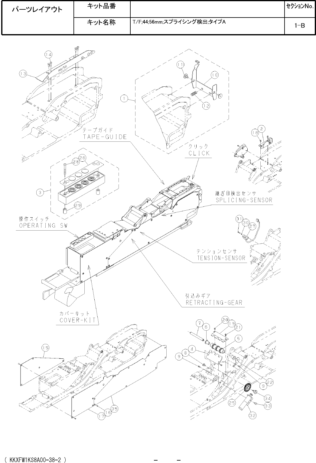 Tape Feeder; 44; 56 mm; Splice sensing;Type A Kit No. Kit Name KXFW1KS8A00 PARTS LAYOUT Section No. M3