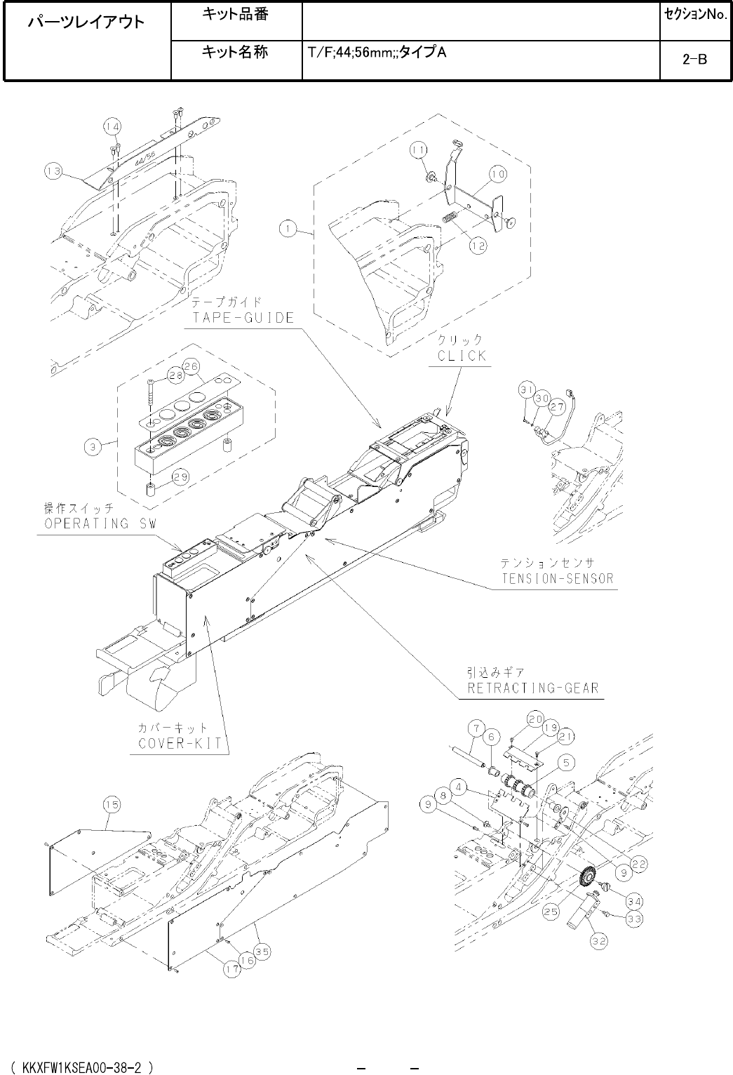 Ref No. Remarks R 1 Q't y Tape Feeder; 44; 56 mm; Type A Part No. R 2 Kit No. Kit Name KXFW1KSEA00 Part Name PARTS LIST Section No. R 3 CLICK 1 1 KXFW1KWMA00 OPERATING-SW 1 3 N610033141AA COMB 1 4 KXFA1PR9B00 GEAR 1…