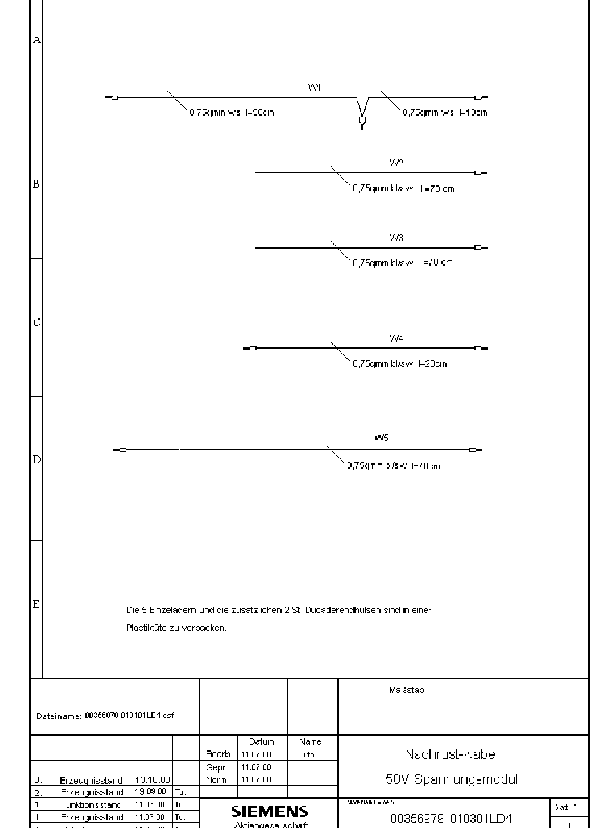 SIPLACE S-25 HM / S-27 HM 1 Montageanleitun g für LP-Kamera Multicolor Ausgabe 02/2007 1.13 Anhang: Platinen, Kabel und Schaltpläne 49 Abb. 1.13.7 Montagesatz Kabel für 24V/50 V Spannungsmodul