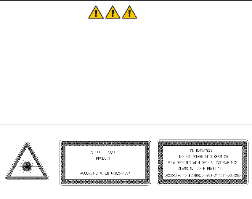 Abb. 2.3.1 Laser Warning Signs in the User Manual in the Pertinent National Language