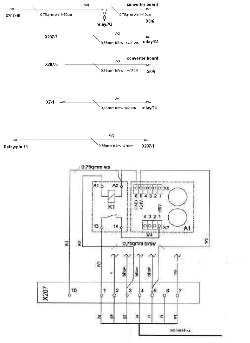 : Wire from X207/3 to relay connection A1.