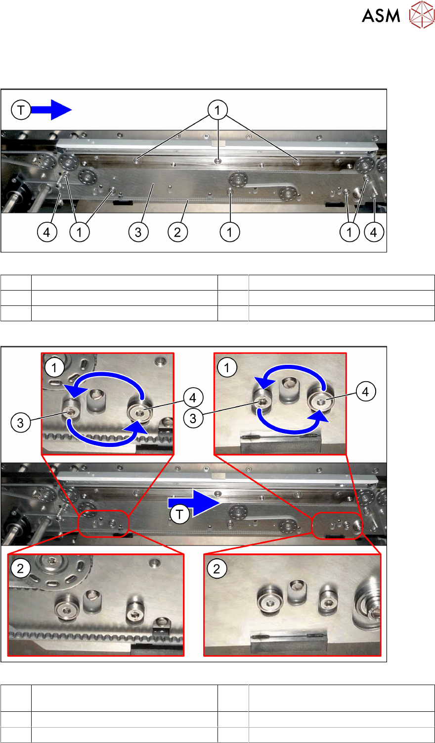 1 Fastening screws (8x) for clamping plate 2 Toothed belt