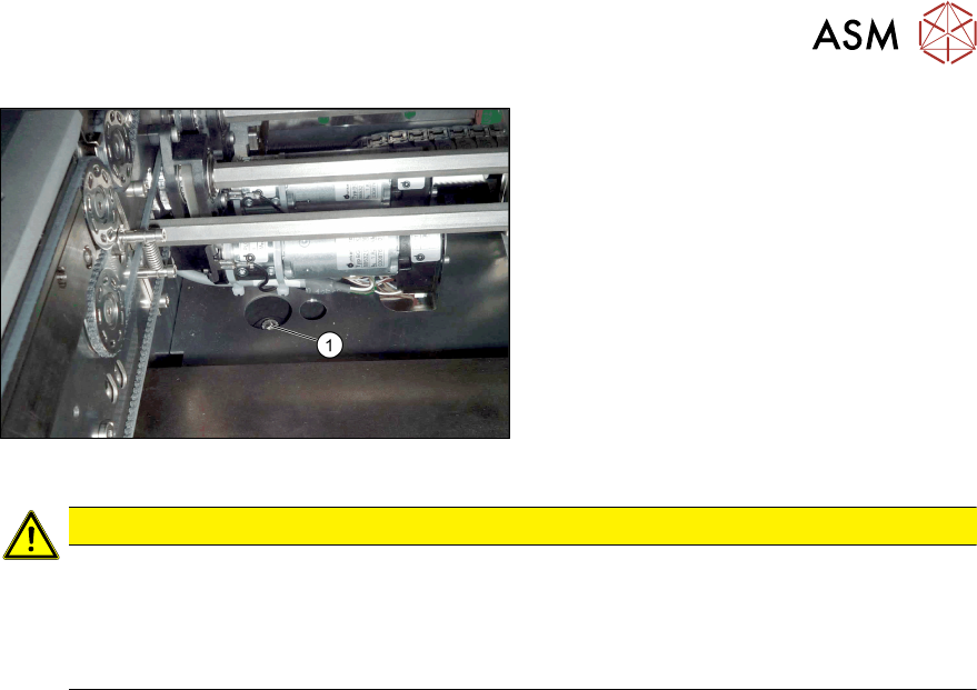 3 Einbau 3.3 Transport absenken Assembly Instructions / Montageanleitung SIPLACE SX1/SX2 V2 Thick Board Option Option Dicke Leiterplatte 02/2019 23 Abb.13: Befestigungsschraube ► Setzen Sie die neuen längeren Befestigun…