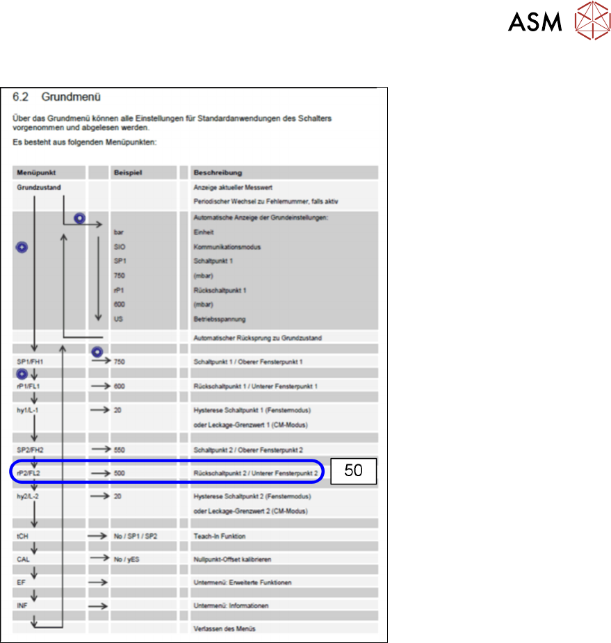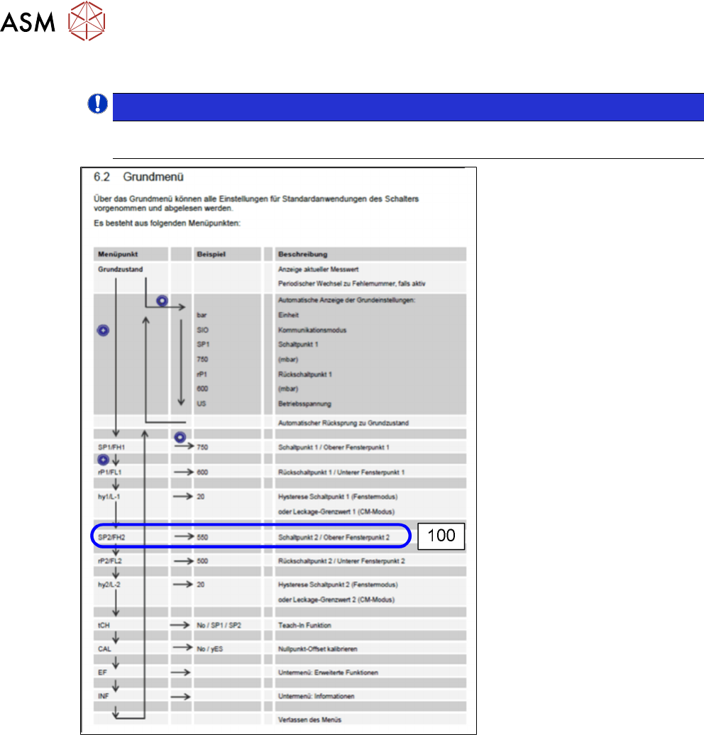 Bevor der Schaltpunkt 2 eingestellt werden kann, muss eventuell erst der Hysterese-