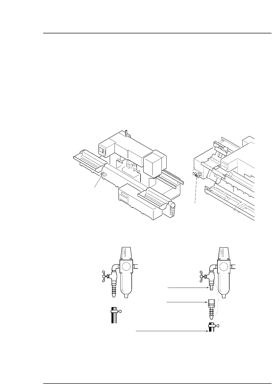 Connect an external air supply hose to the machine and adjust the filter regulator to set