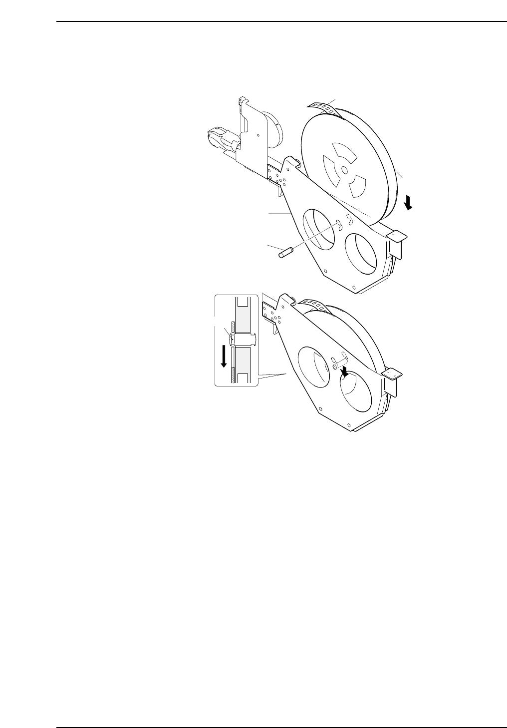 2. Set the parts reel into the feeder holder. Set the components so that the parts feed from the top of the reel as shown in the illustration. Make sure to use the center pin in the holder. Setting the Parts Reel 1 Note:…