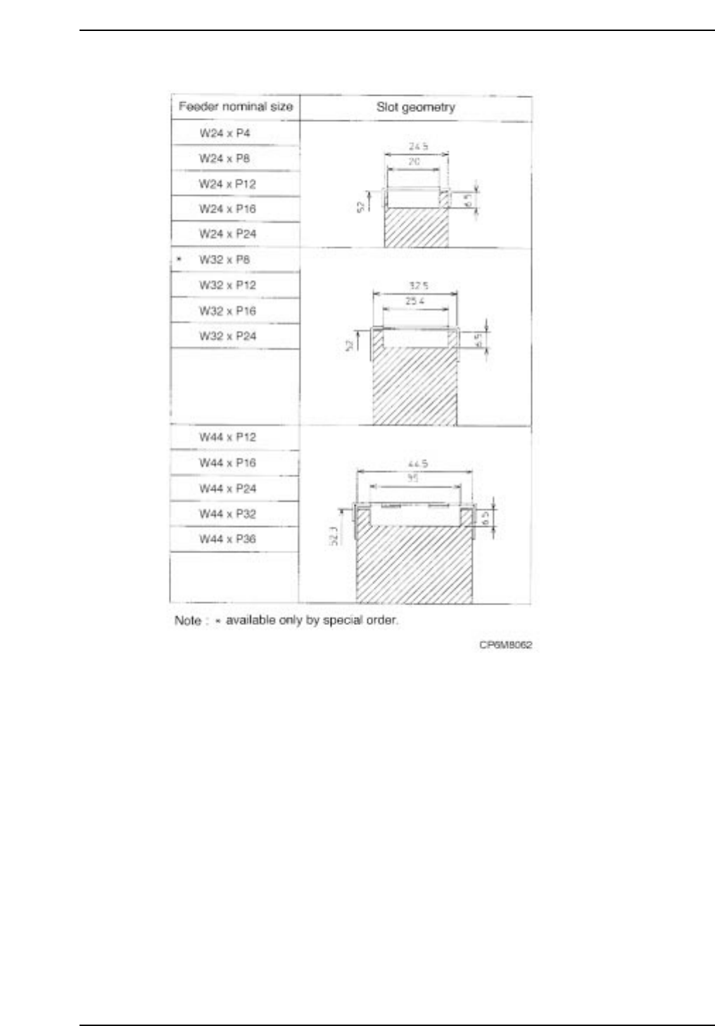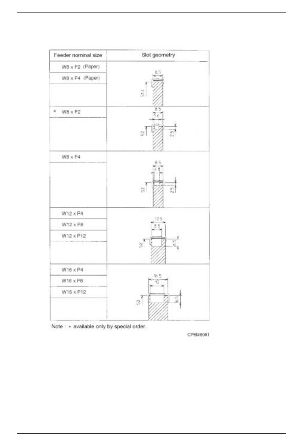 WC Feeders Slot Dimensions 2/2 Part 8 Chapter 1 WC Feeders Edition 1.0 8-1-39 CP-6 Series Mechanical Reference