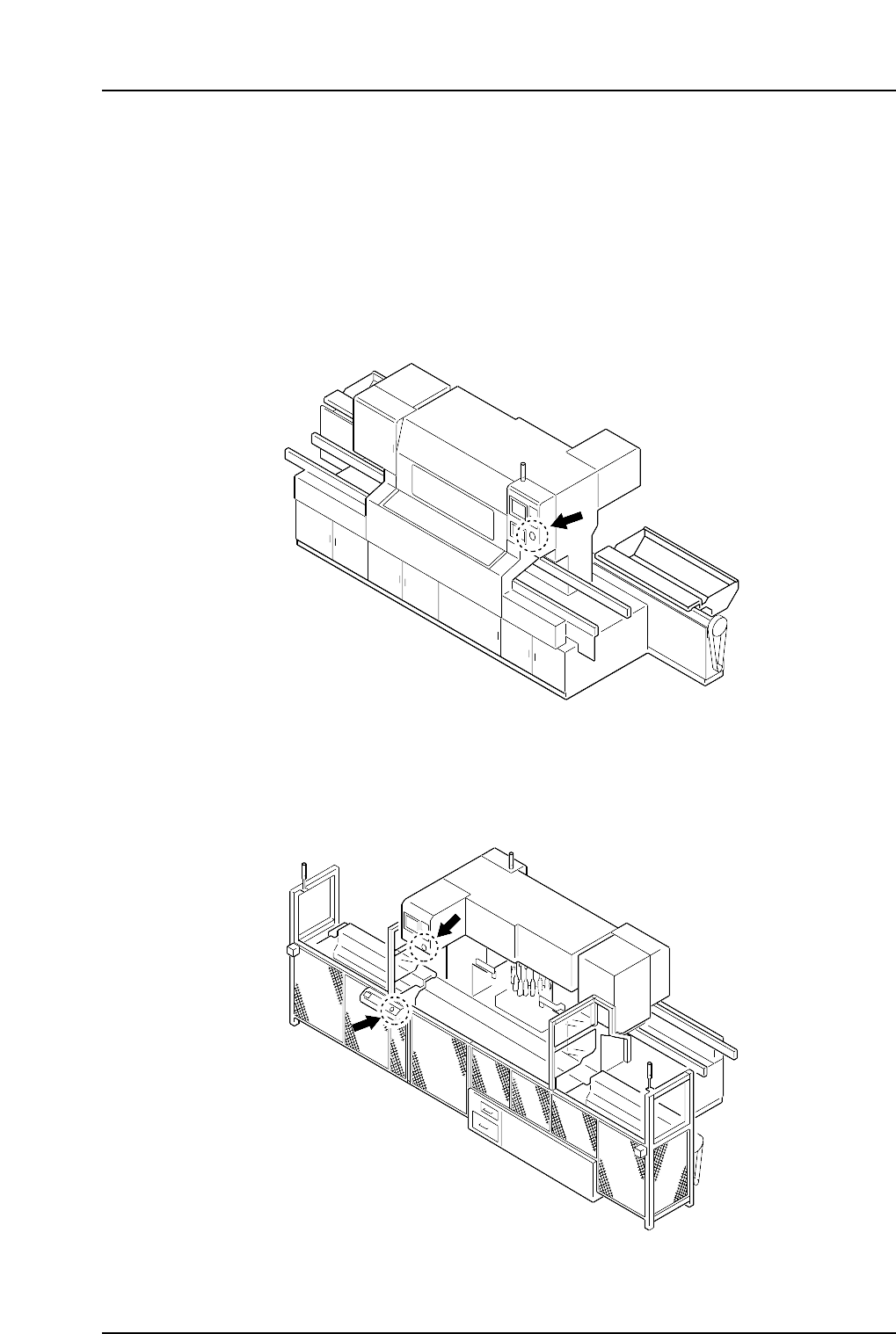 5. The EMERGENCY ST OP Buttons In the event of an emergency, press any of the red EMERGENCY STOP buttons located on the machine at the positions indicated in the figures below. Note: The EMERGENCY STOP and CYCLE STOP but…