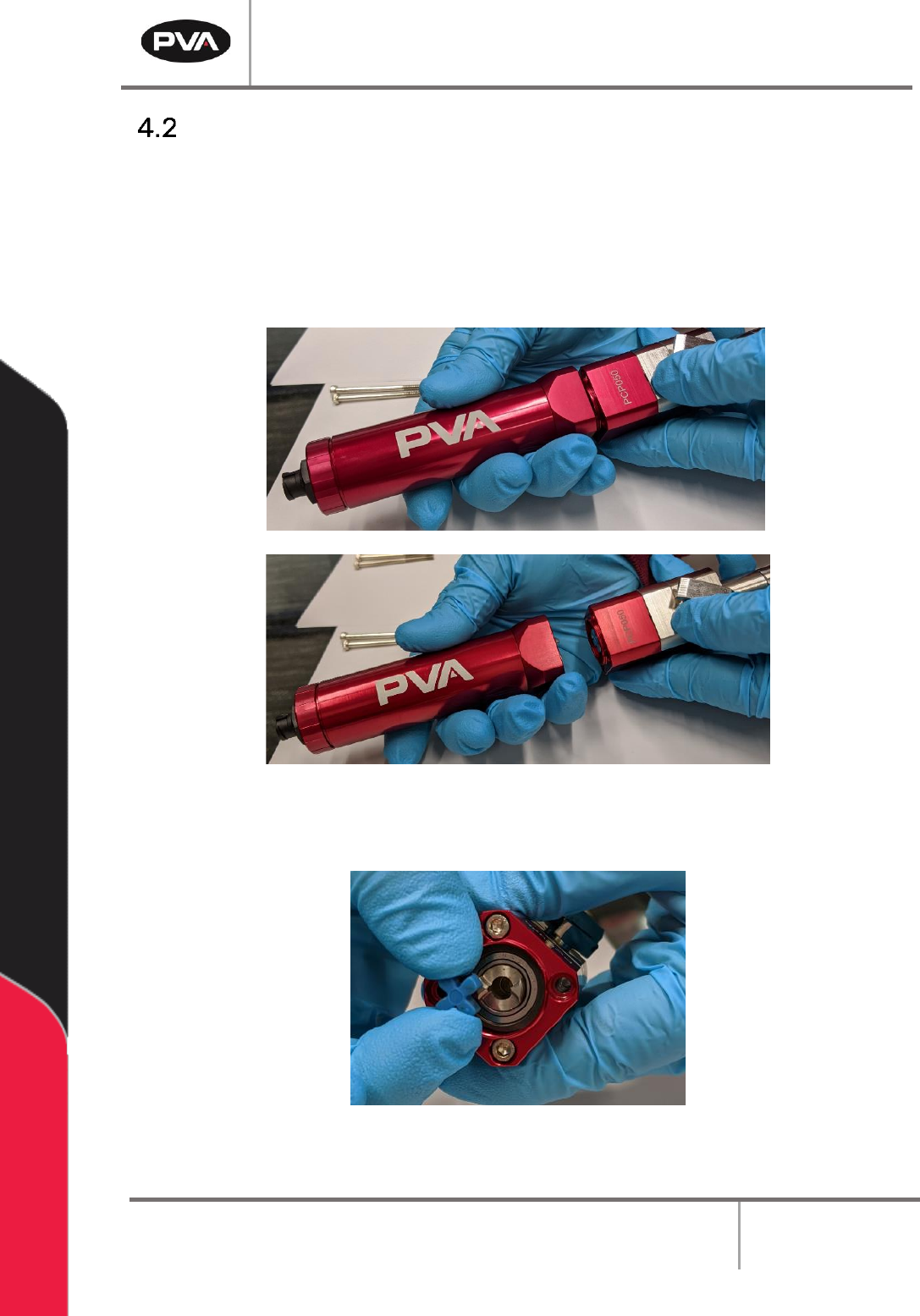 PCP Series Manual Revision B / October 2021 Page 16 of 56 5. Twist to unscrew the luer lock and remove it from the stator sle eve. Figure 5: Remove Luer Lock 6. Twist to unscrew the union cap and remove it from the stat …