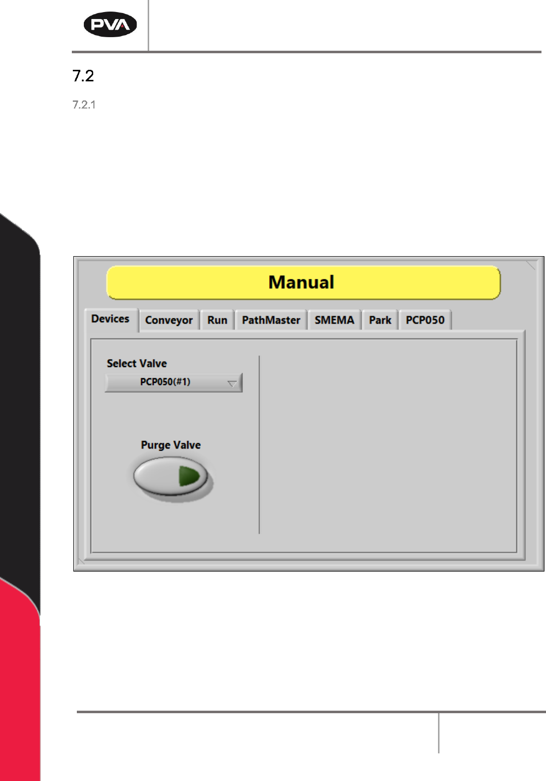 4. Select Purge Valve to purge material from the selected valve.