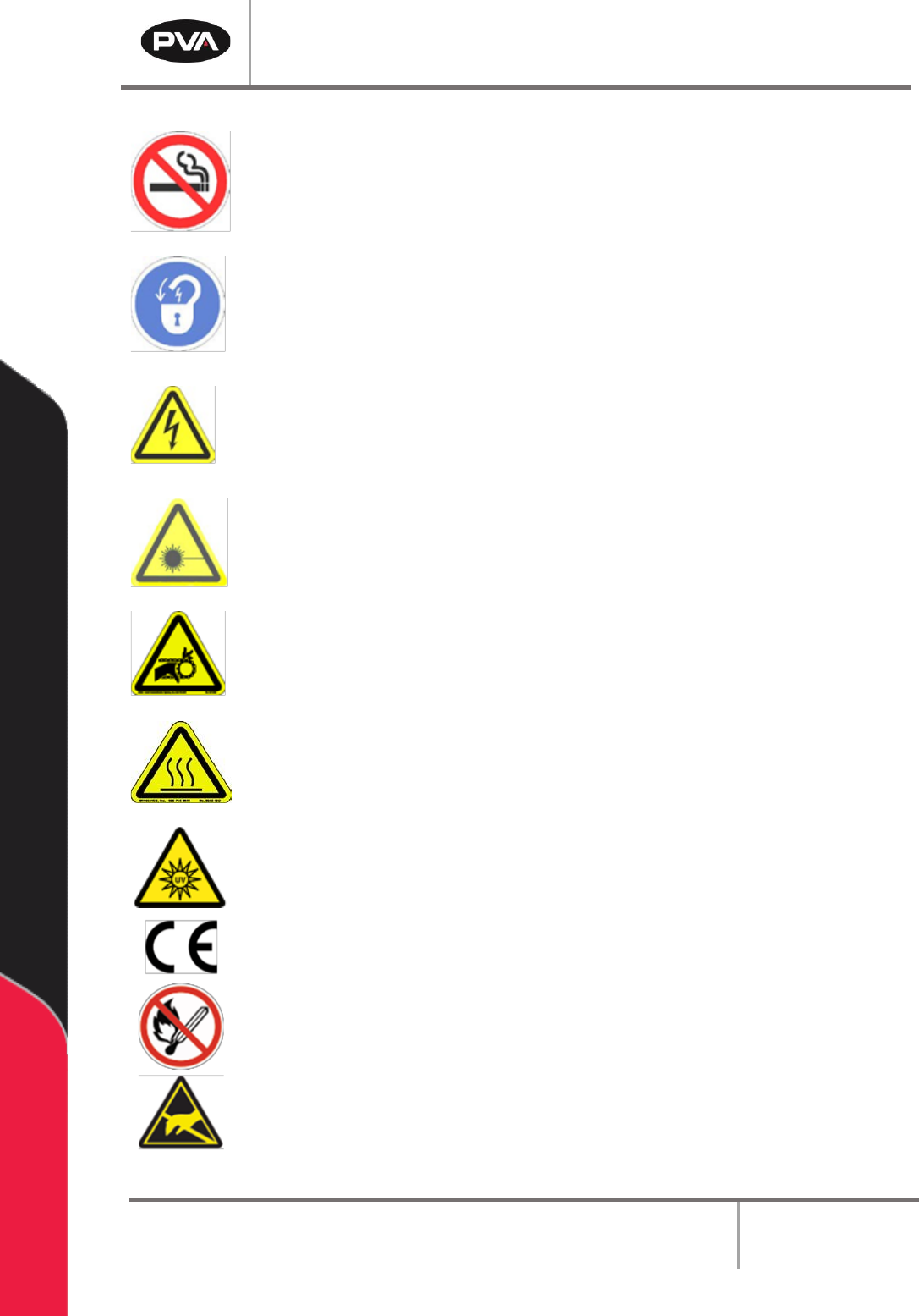 PCP Series Manual Revision B / October 2021 Page 7 of 56 Do not smoke near the machine. Always have a fire ex tinguisher available for emergency use. Before performing any repairs or maintenance to the system, t urn off …