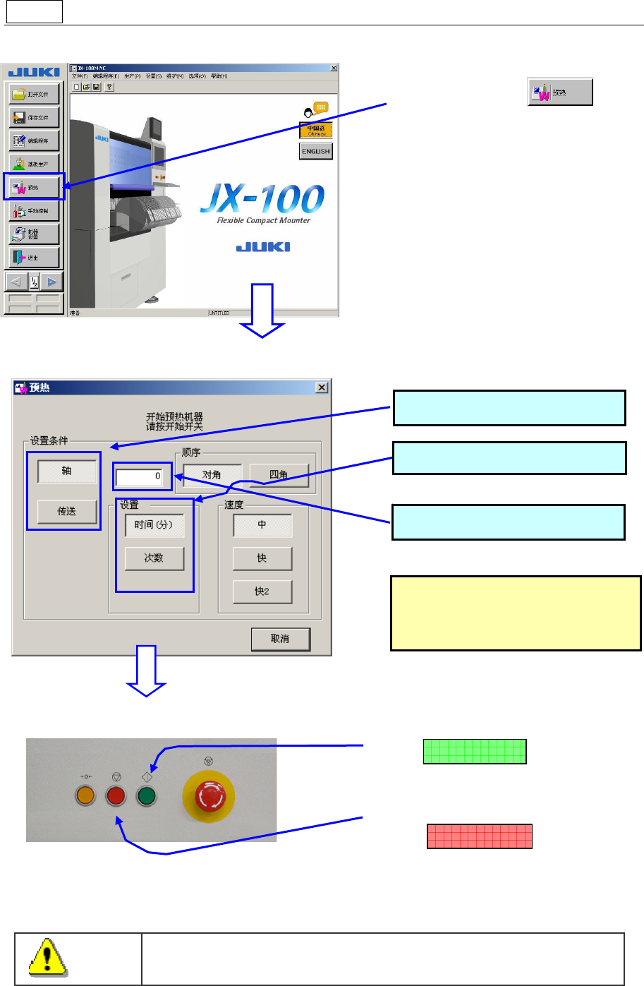 ① 生产前执行预热,以确保在稳定状态下开始生产。