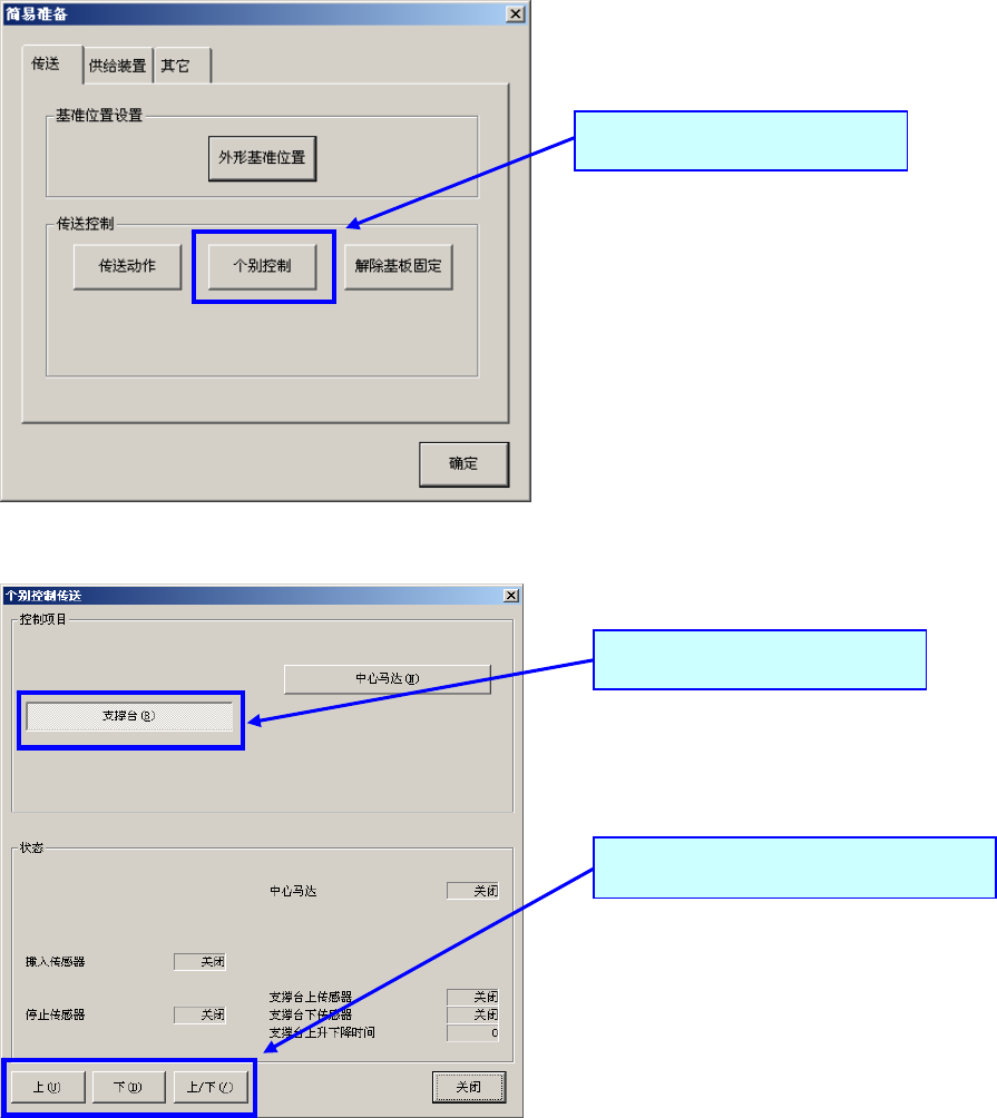 ④ 将基板放置在传送装置上以后,在传送个别控制画面里启动「支撑台」。