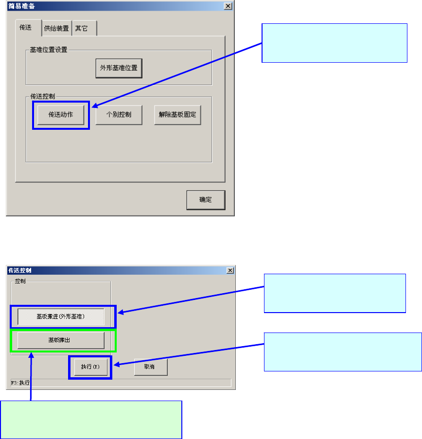 ① 请在传入一侧安放基板,并通过连续动作确认基板可顺畅地流动。