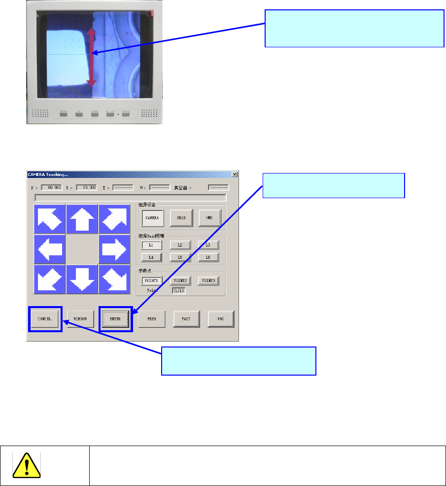 ⑥ 监视器里会显示出摄像机的图像。一边看着监视器,一边对操作画面的“移动按钮”进行操作。